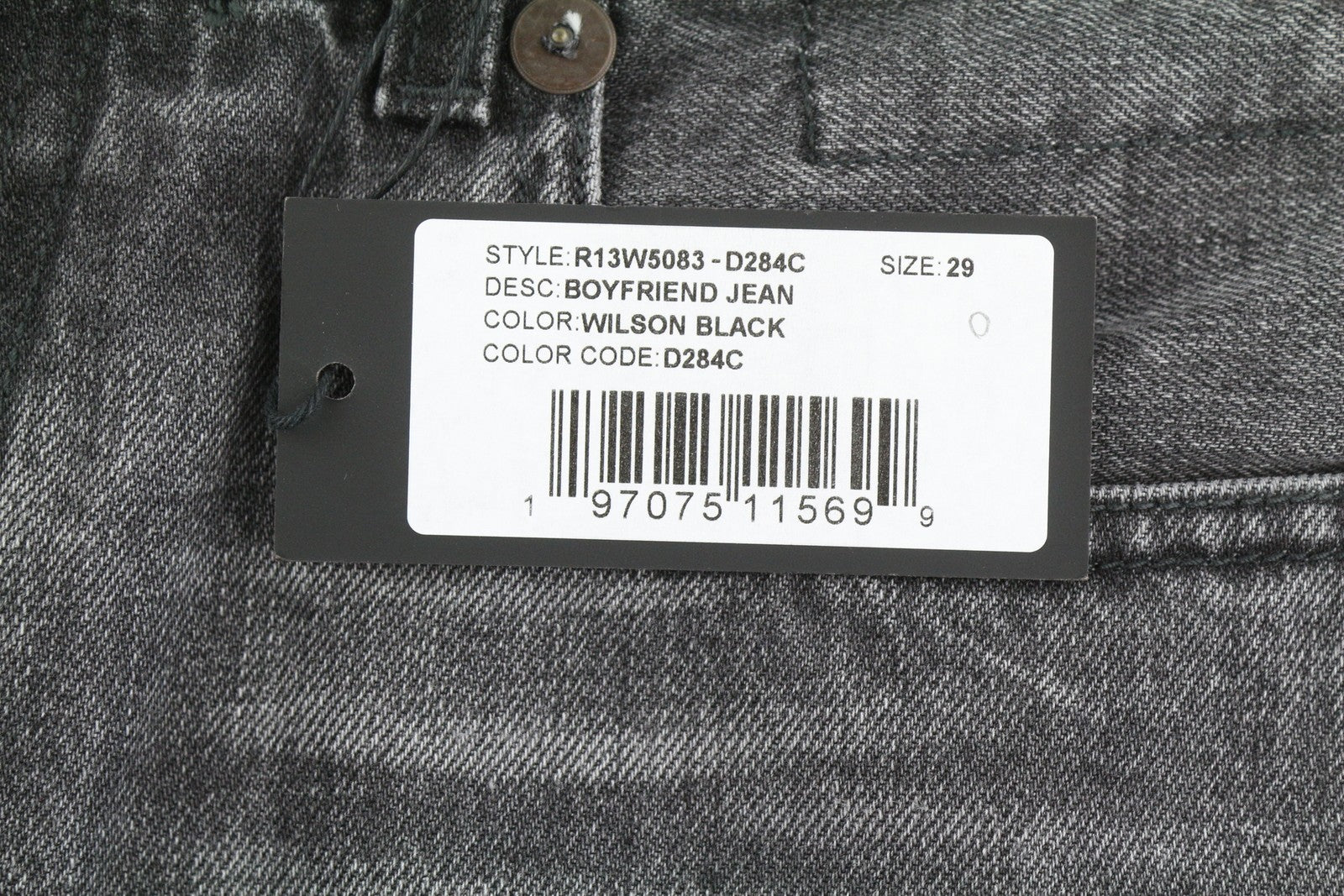 R13 Boyfriend Women Jeans 29 Wilson Black Washed Faded Cropped Ankle