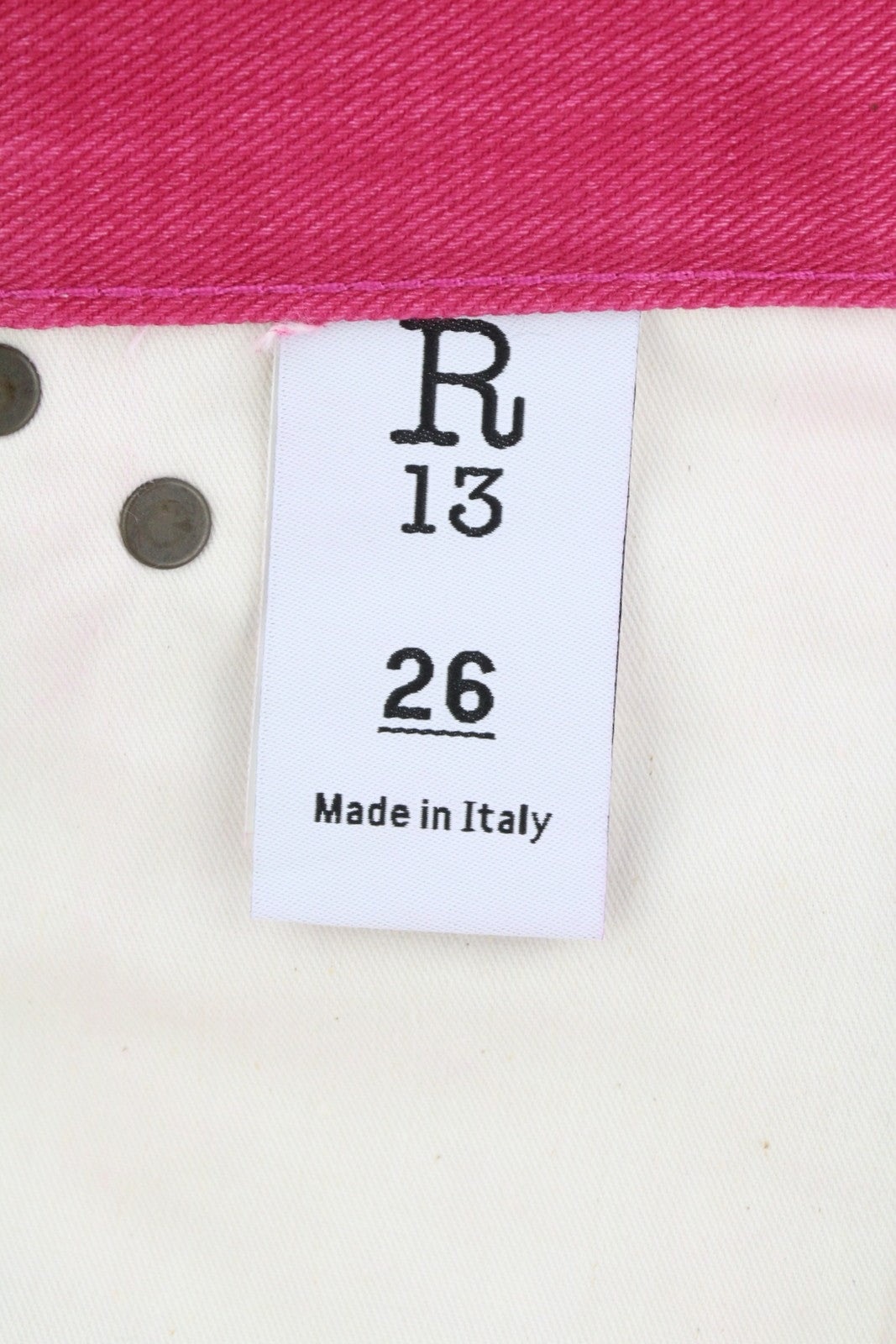 R13 Damon Pleated Women Jeans 26 Vivid Pink Wide Leg Zip Pocket Denim