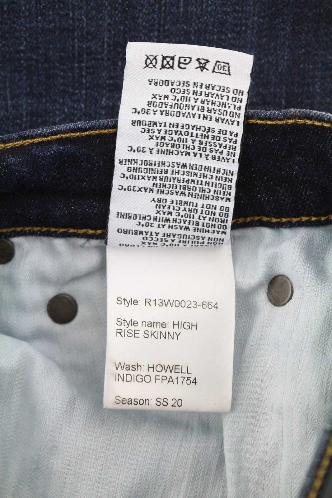 R13 High Rise Skinny Women Jeans 27 Howell Indigo Faded Whisker Distress