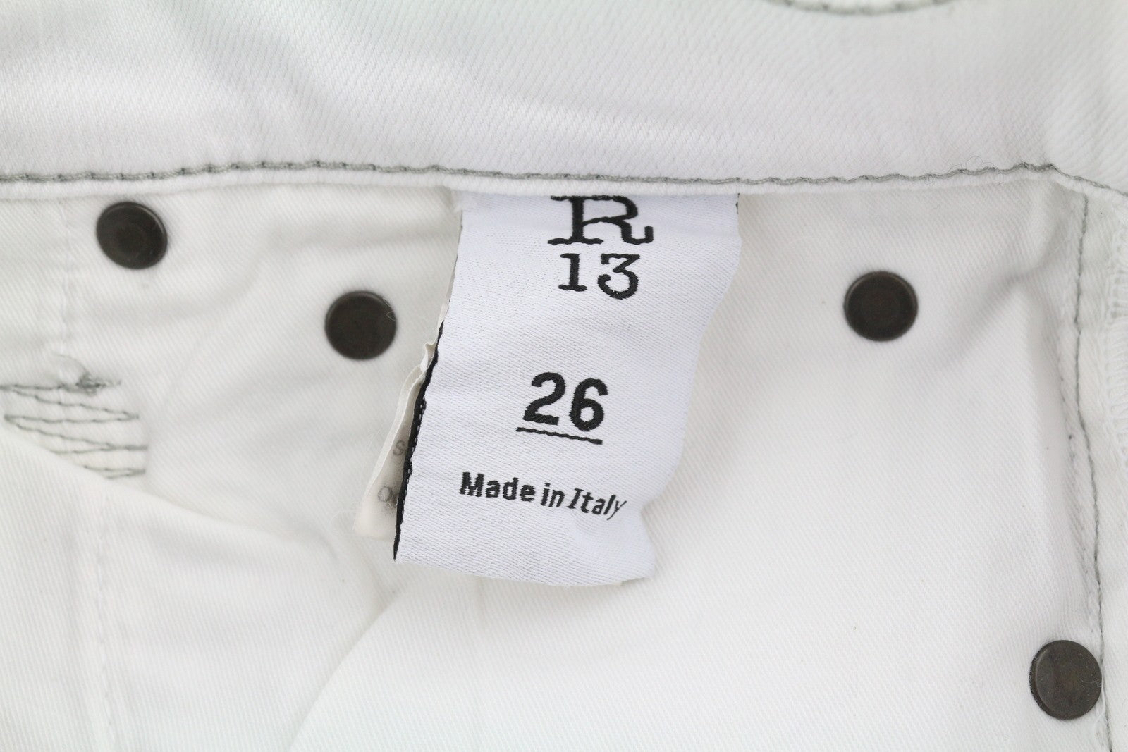 R13 Jane Women Jeans 26 Crackled Grey Stretch Slim Straight Long RRP870
