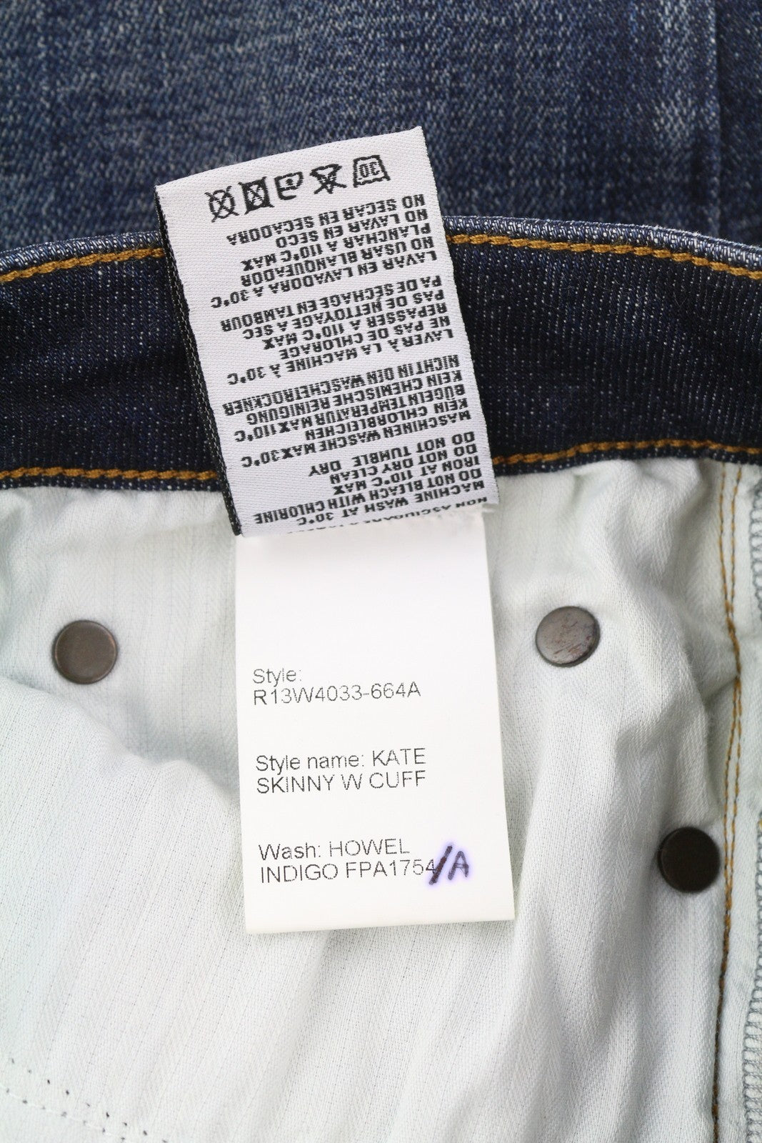 R13 Kate Skinny Cuff Women Jeans 27 Howell Indigo Distressed Cropped Ankle