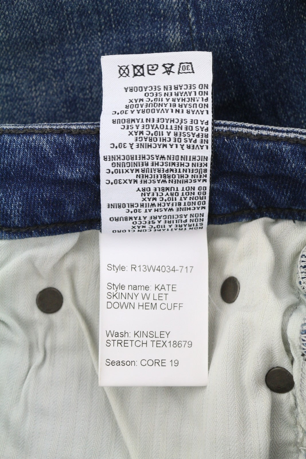 R13 Kate Skinny Let Down Cuff Women Jeans 27 Kinsley Stretch Faded Blue