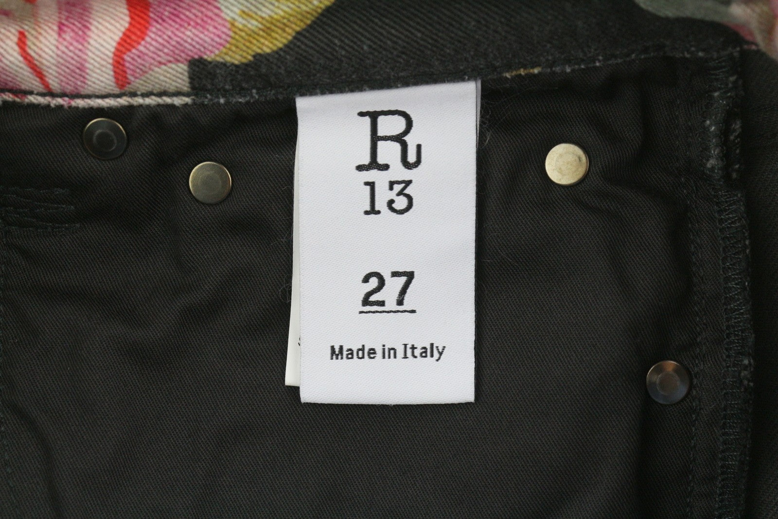 R13 Kick Fit Women Jeans 27 Rose Print Slim Straight Cropped Ankle Zip Fly