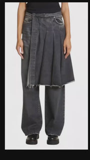 R13 Kilted Damon Women Jeans 27 Everit Black Faded Skirt High Waist RRP€899
