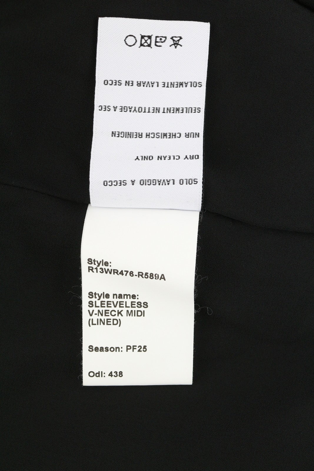 R13 Sleeveless V-Neck Midi Women Dress M Black Silk PF25 RRP1075