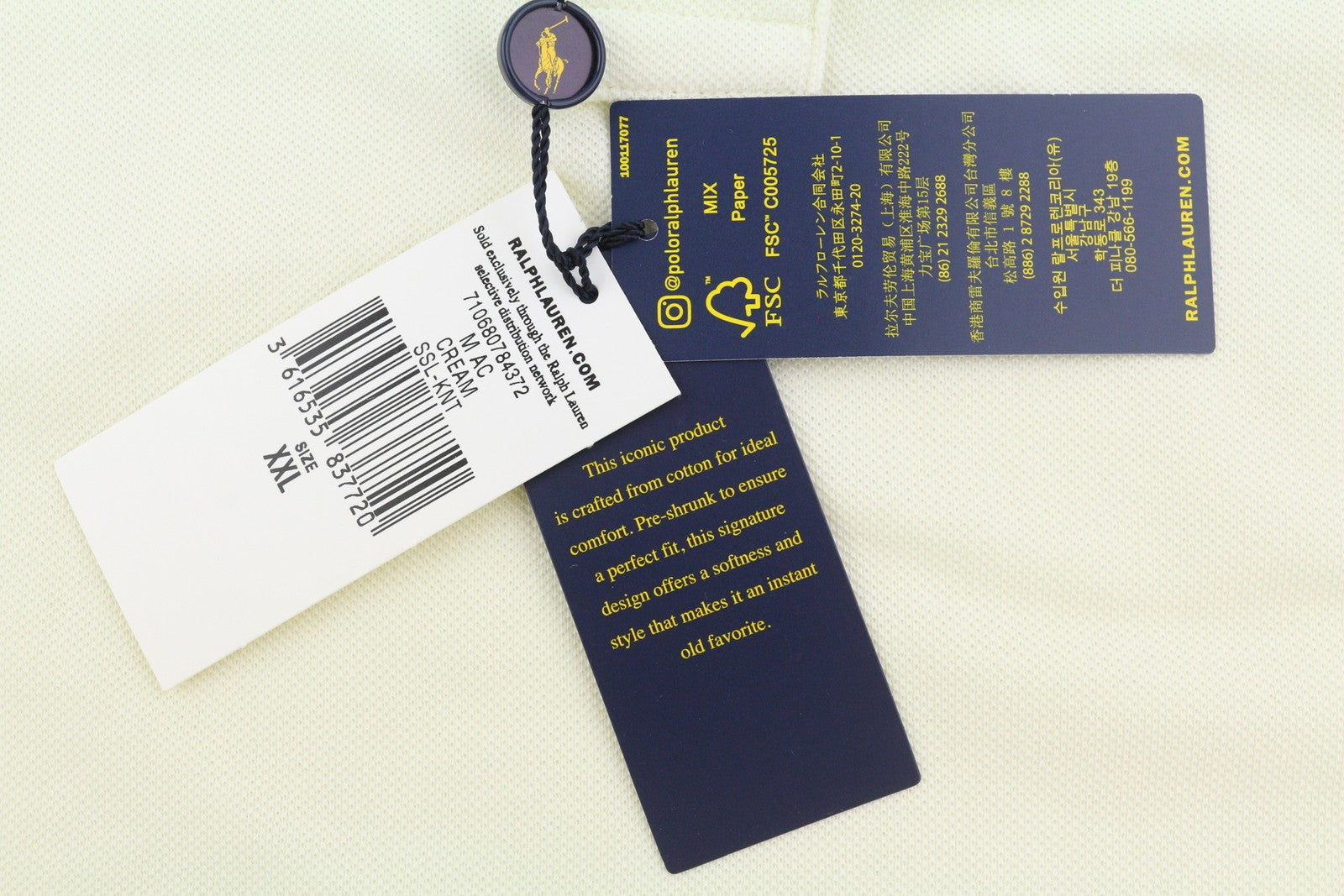 RALPH LAUREN Custom Slim Fit Men Polos 2XL Cream Embroidered Logo Short Sleeve
