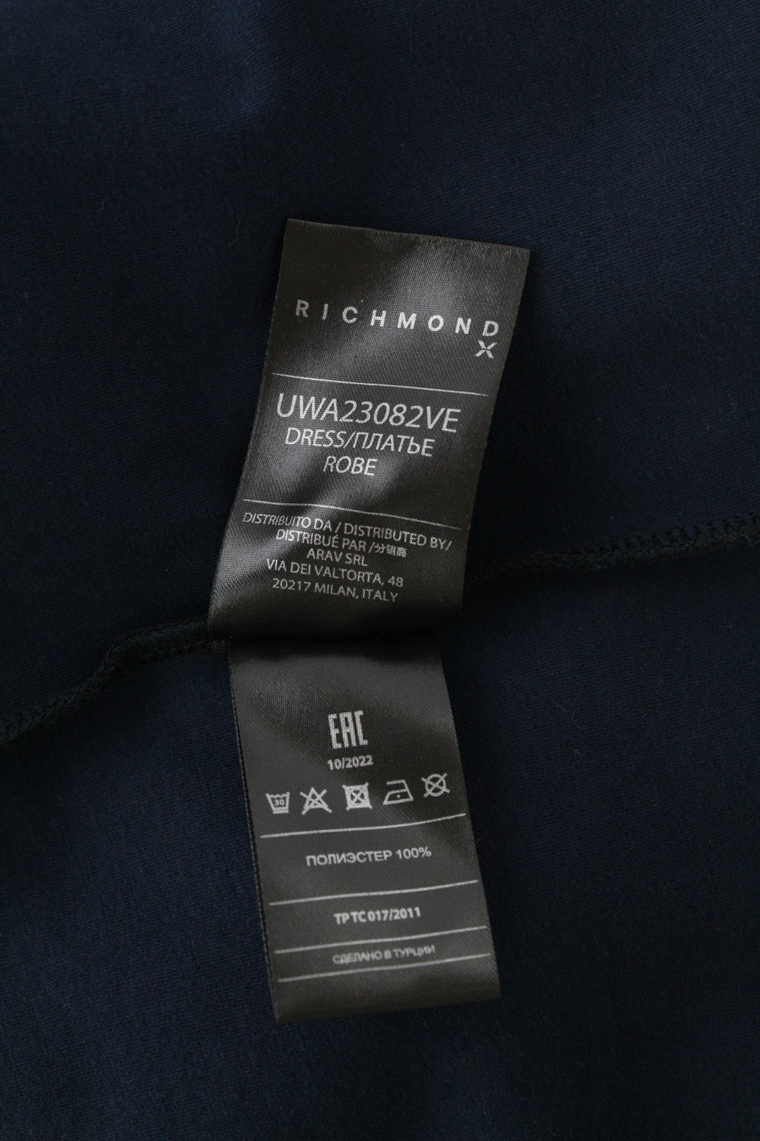 RICHMOND Women's Dress S Dark Blue V-Neck Long Sleeve Split Fitted Front Logo