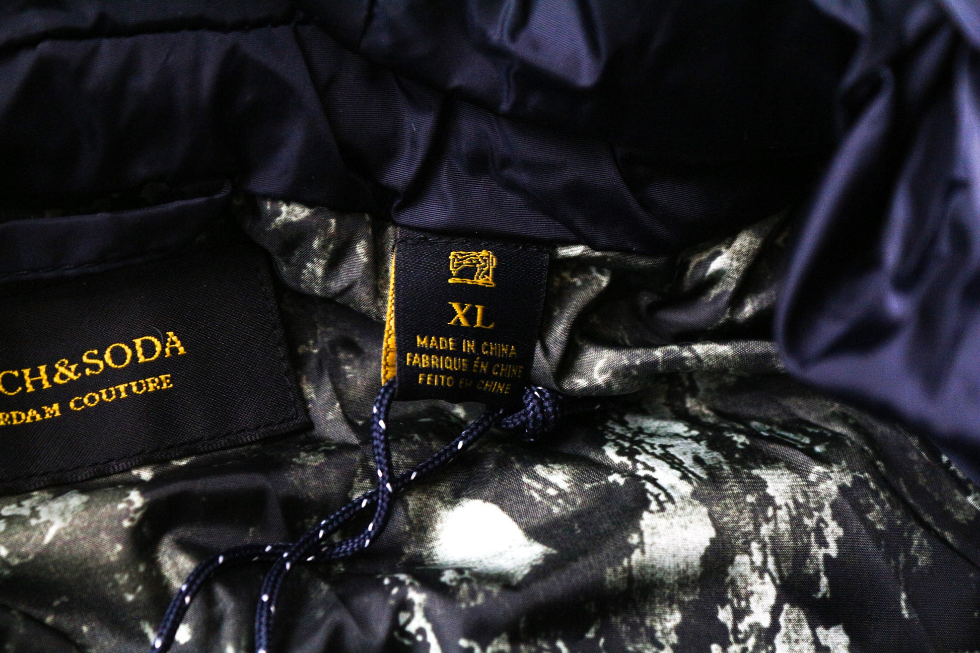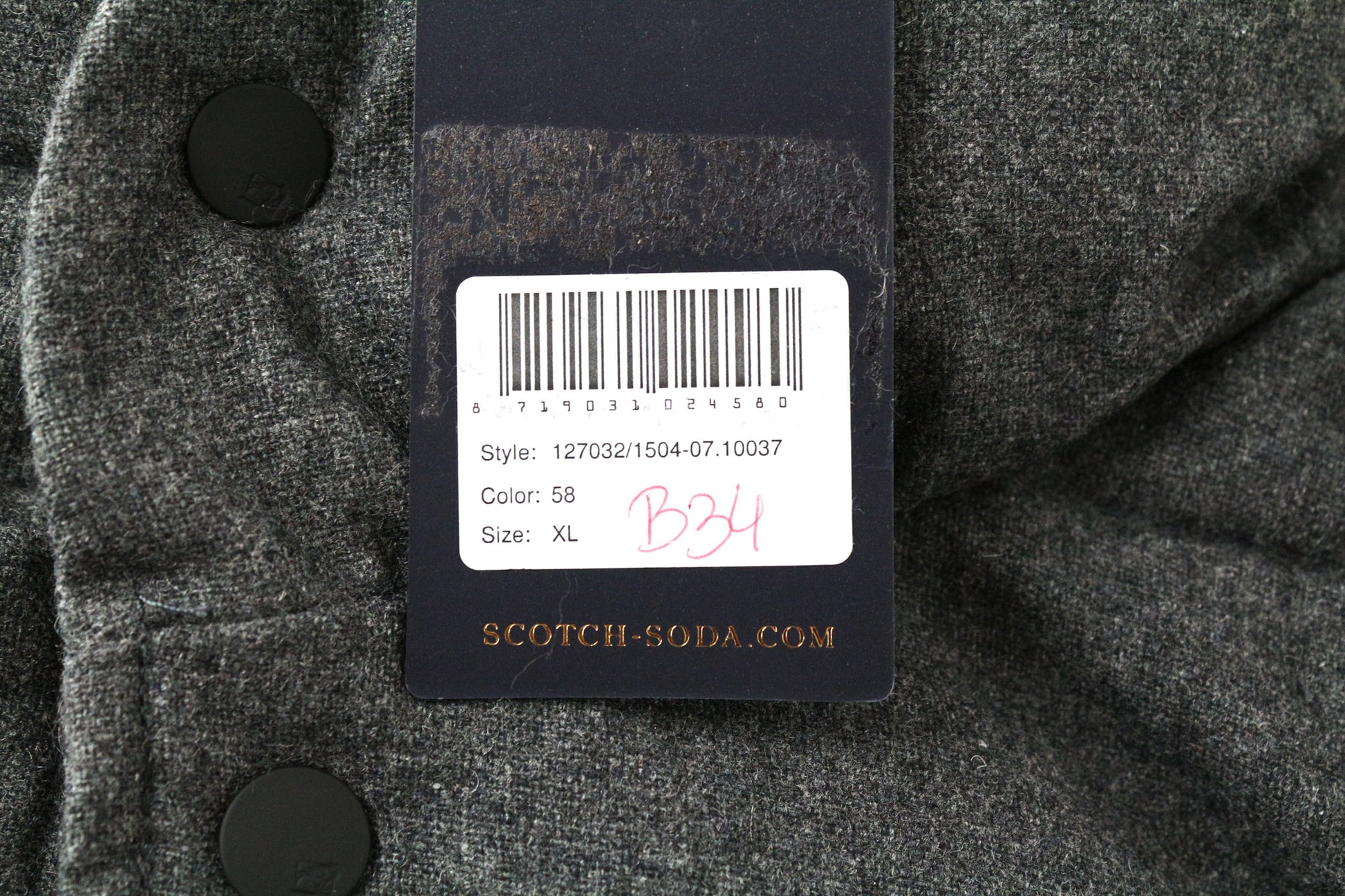 SCOTCH & SODA Men's XL Dark Grey Hooded Wool Blend Quilted Zip-Up Jacket