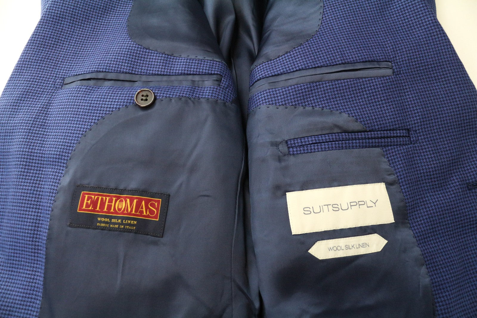 SUITSUPPLY Havana Men's Blazer UK36R Blue Slim Wool Silk Houndstooth 2Pc Suit
