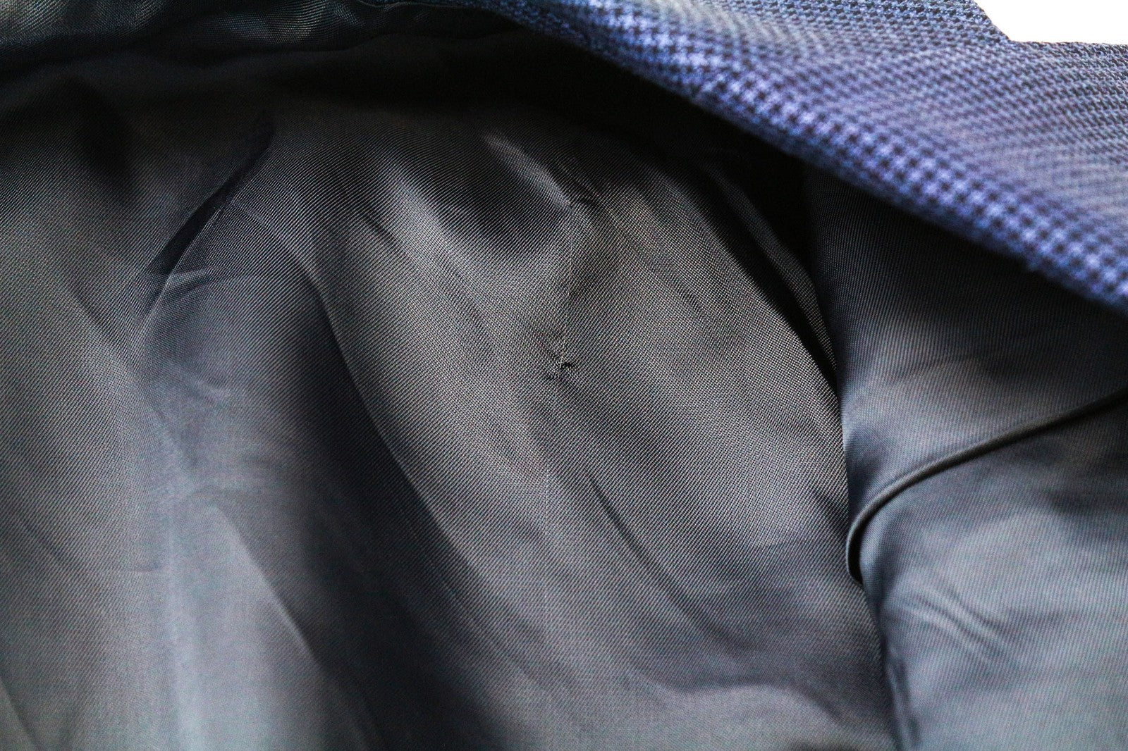 Pulled thread on the blazer's lining. Stretched out seam on the waistcoat. Please see added photos.