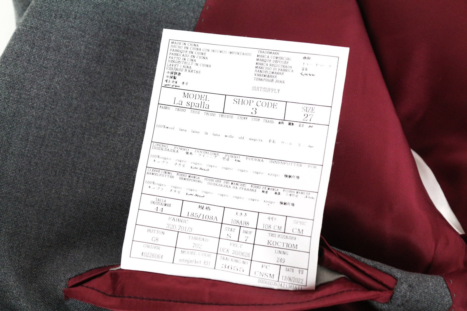 SUITSUPPLY La Spalla Blazer UK44S Grey Wool Slim Fit Traveller Melange