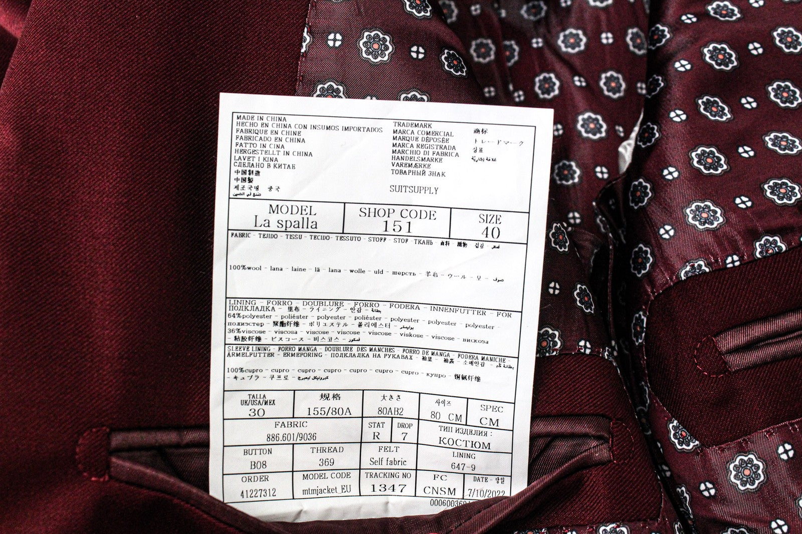 SUITSUPPLY La Spalla Men's Blazer UK30R Red Pure Wool Formal One-Button