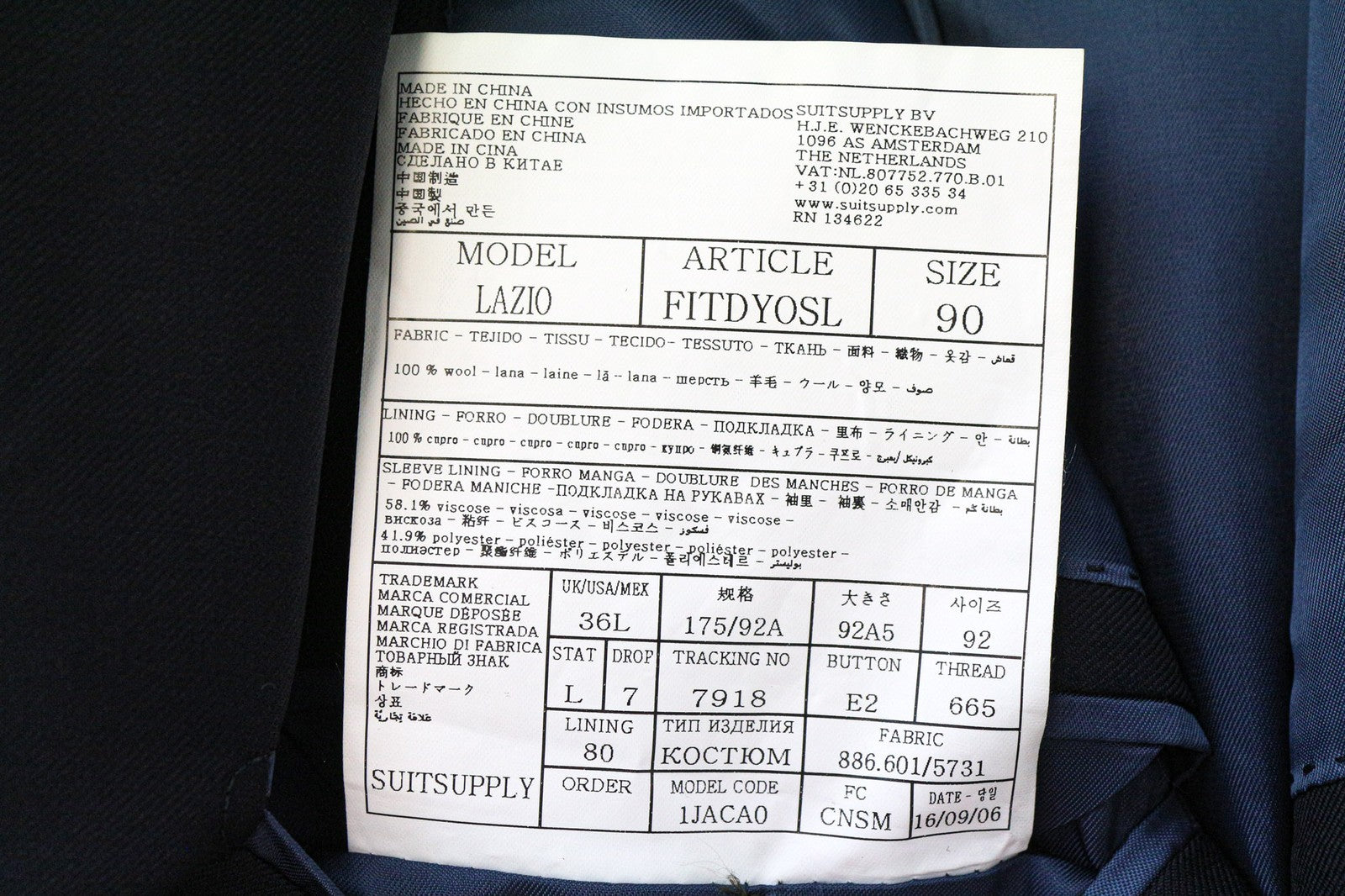 SUITSUPPLY Lazio Men's Blazer UK36L Navy Wool Lined Classic Single-Breasted