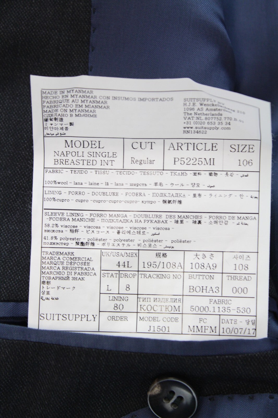SUITSUPPLY Napoli Blazer Men's UK44L Grey Wool Zignone Super Dress