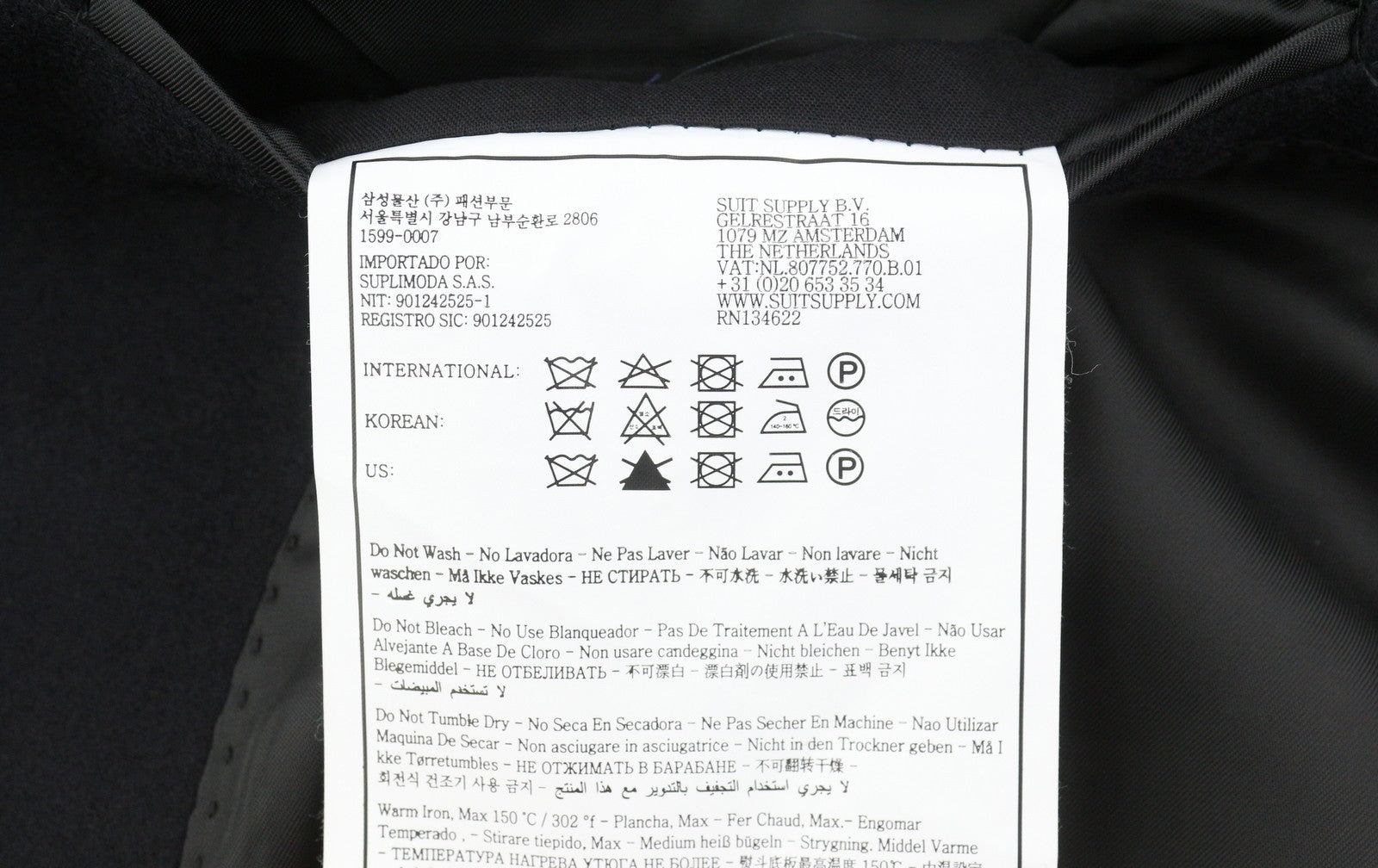 SUITSUPPLY Vicenza Men Coat UK46S Black Wool Cashmere Notch Lapel Button-Up