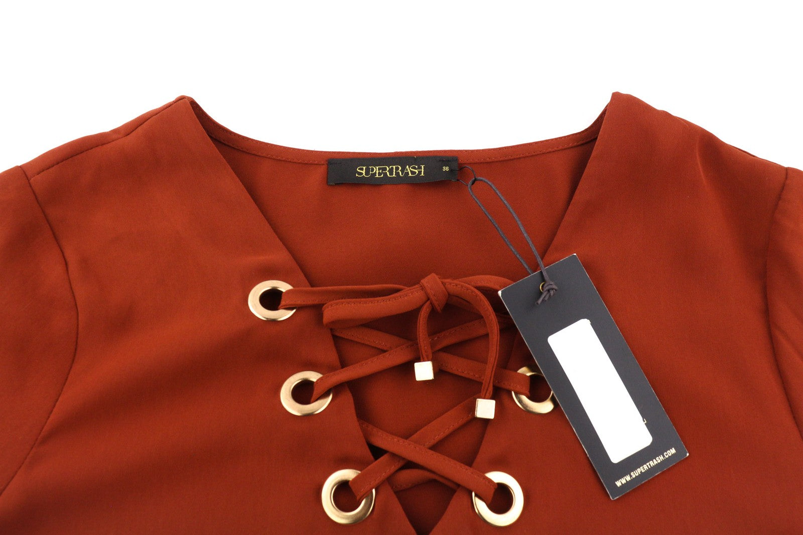 SUPERTRASH Dambi Women's Dress 36 V-Neck Long Sleeve Strap Detail Short Logo