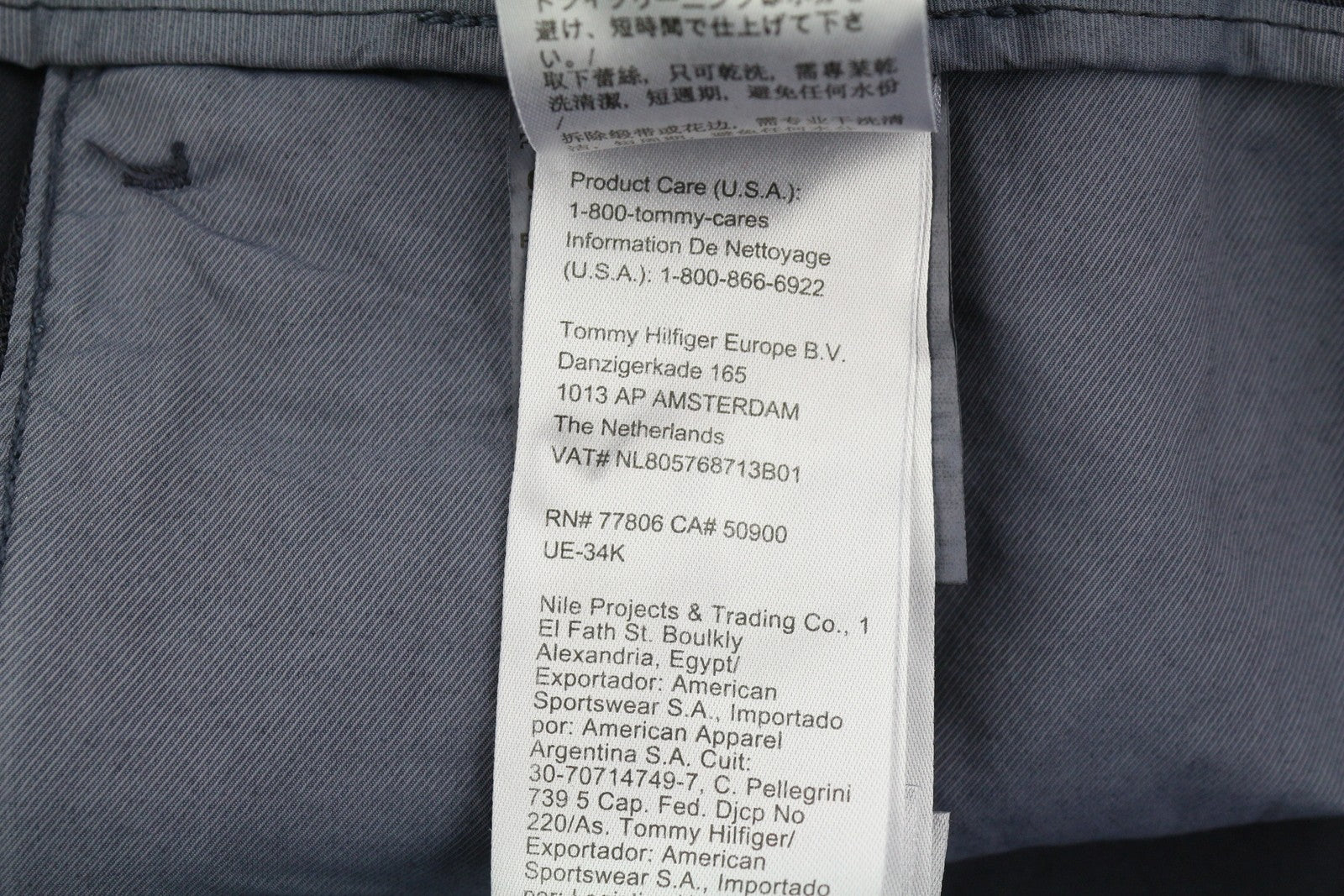 TOMMY HILFIGER Army Stretch Twill Men Trousers EU50 Dark Blue Pleated Zip Fly