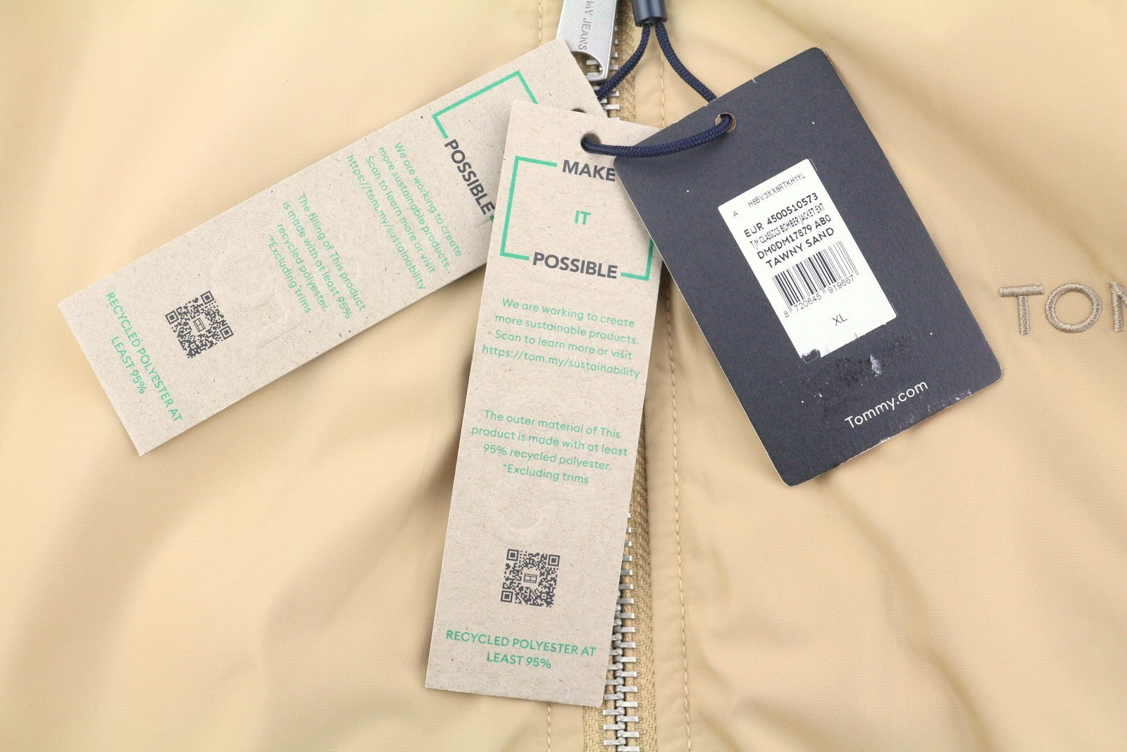 TOMMY HILFIGER Classics Bomber Men Jacket XL Beige Padded Zipper Bomber RR209
