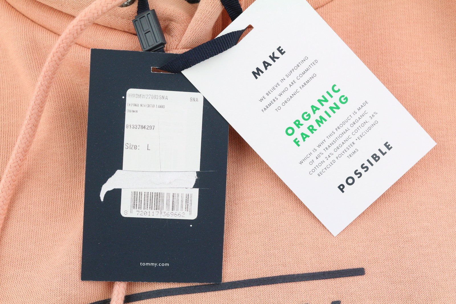 TOMMY HILFIGER Fapino Stacked Logo Men Hoodie L Organic Cotton Blend Pullover