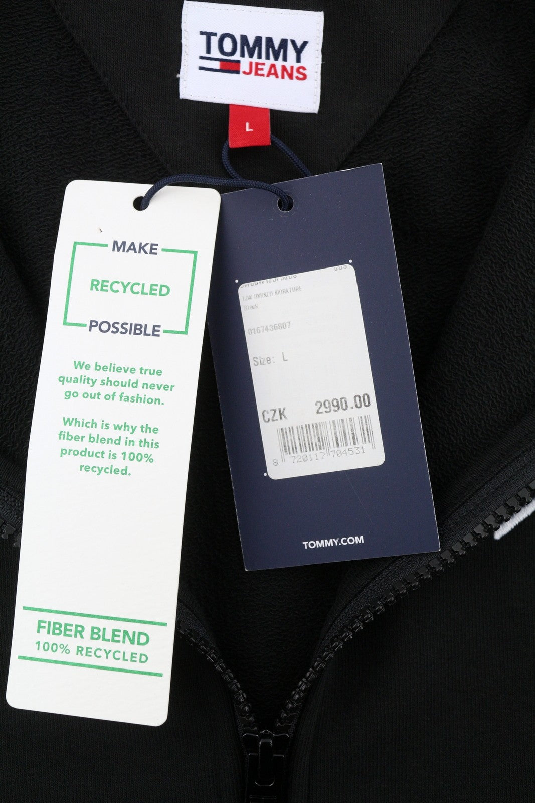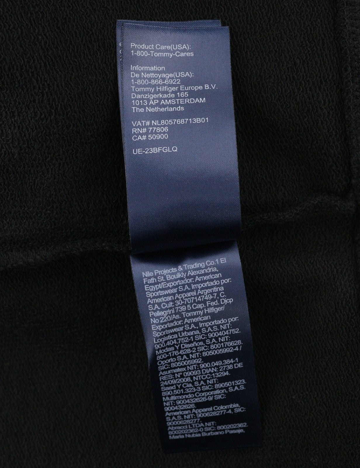 TOMMY HILFIGER Men Hoodie L Black Full Zip Front Logo Oversized Pockets
