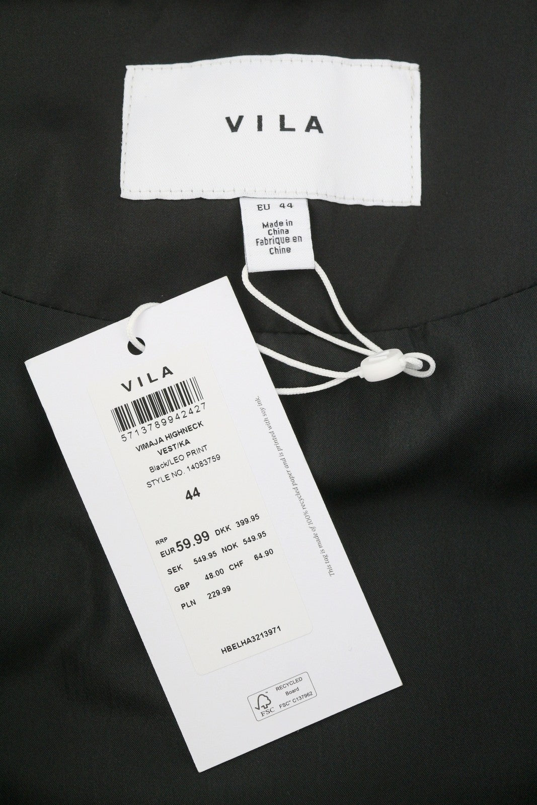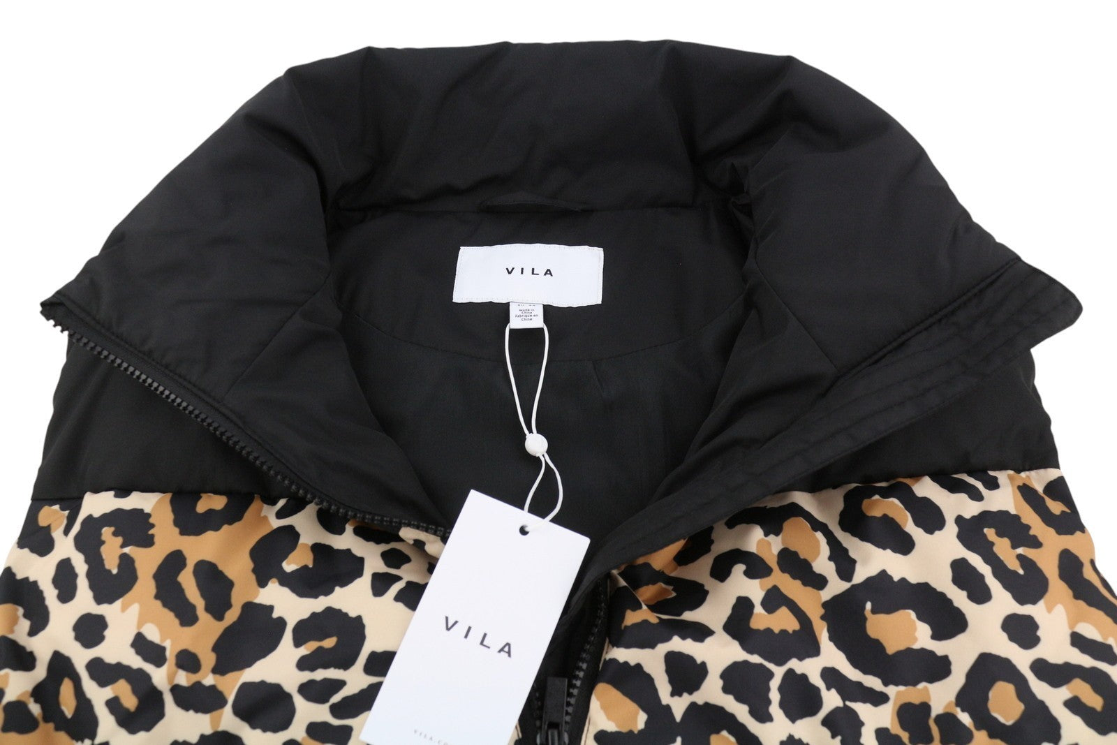 VILA Maja High Neck Women Waistcoat EU44 Black Leopard Print Quilted Padded