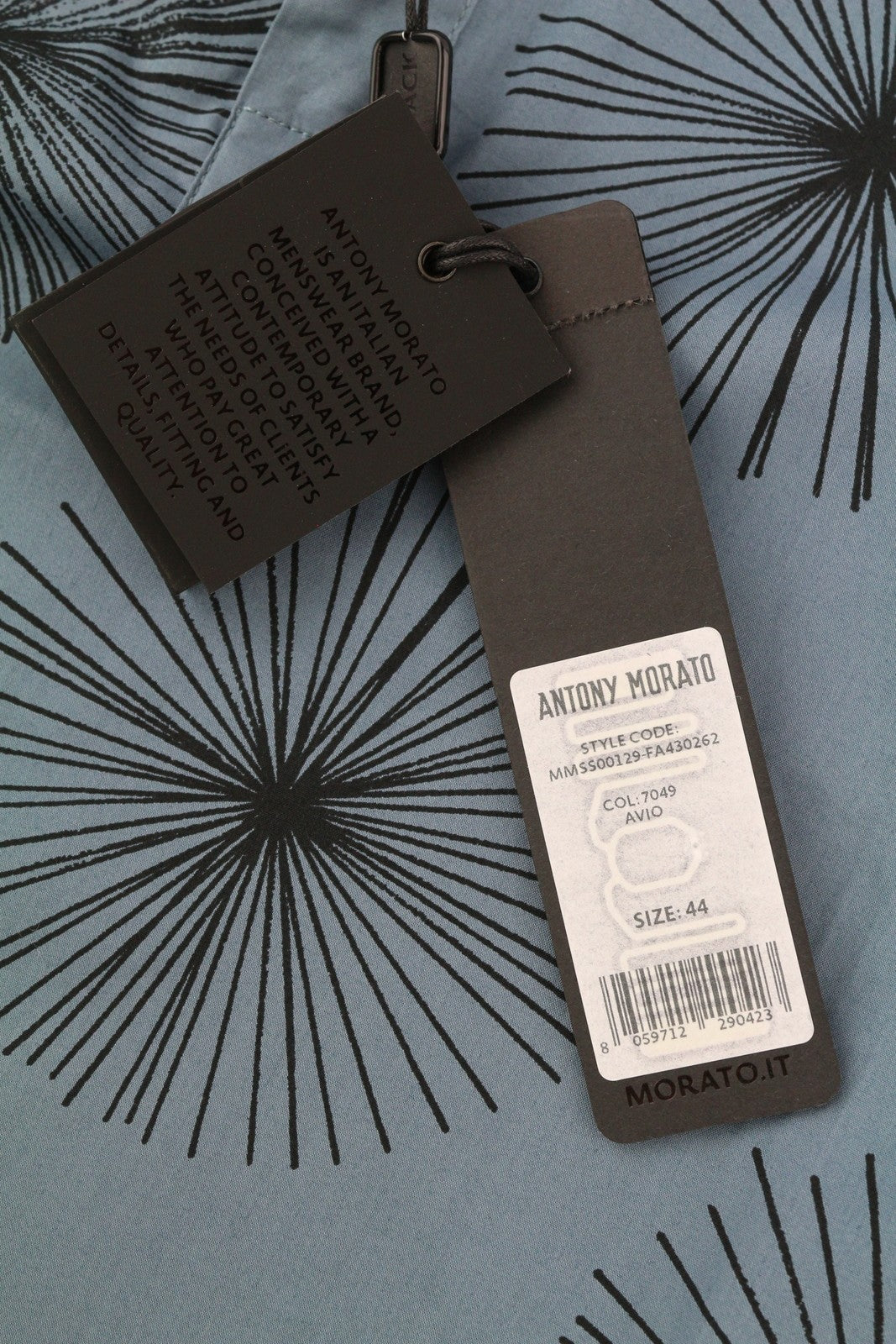 ANTONY MORATO vyriški marškiniai XS, mėlyni, raštuoti, plataus kaklo, trumpomis rankovėmis, sagomis užsegami.