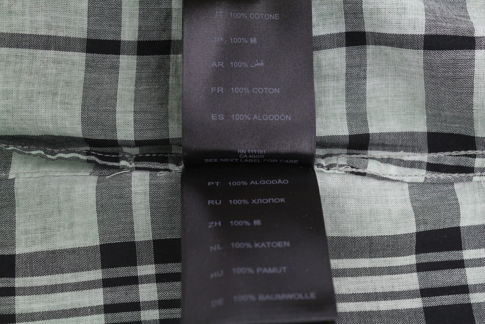 ANTONY MORATO vyriški marškinėliai su tiesaus kirpimo raštu, XS dydžio, žali, languoti, su įpjova ir trumpomis rankovėmis.