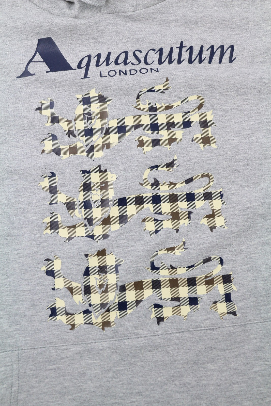 AQUASCUTUM FCIA21 vyriškas džemperis su gobtuvu M, melanžo pilkas, kengūros kišene, megztinis su gobtuvu ir logotipu