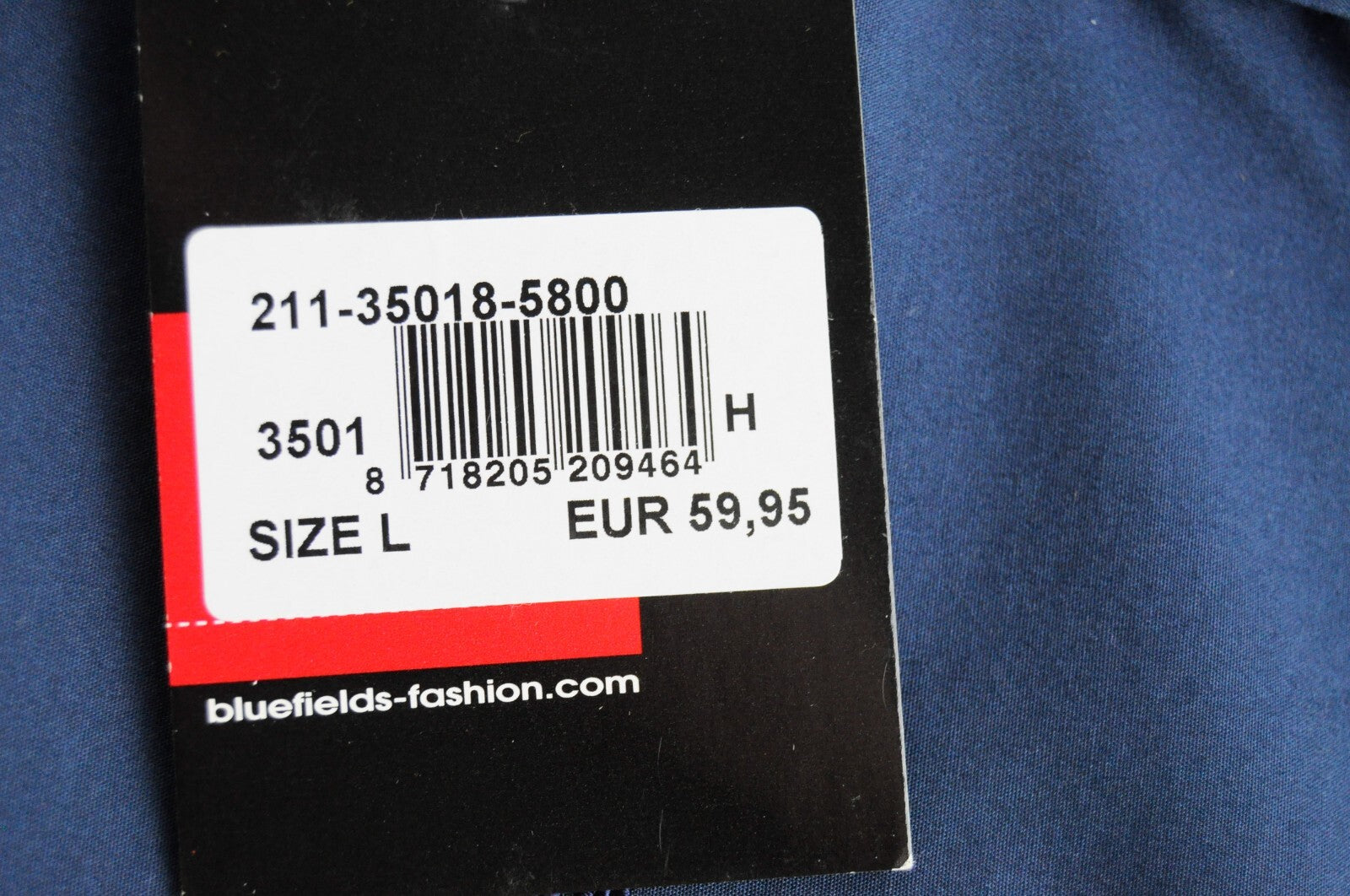 BLUE FIELDS Men Shirt L Blue Button-Down Long Sleeve Cotton with Pocket