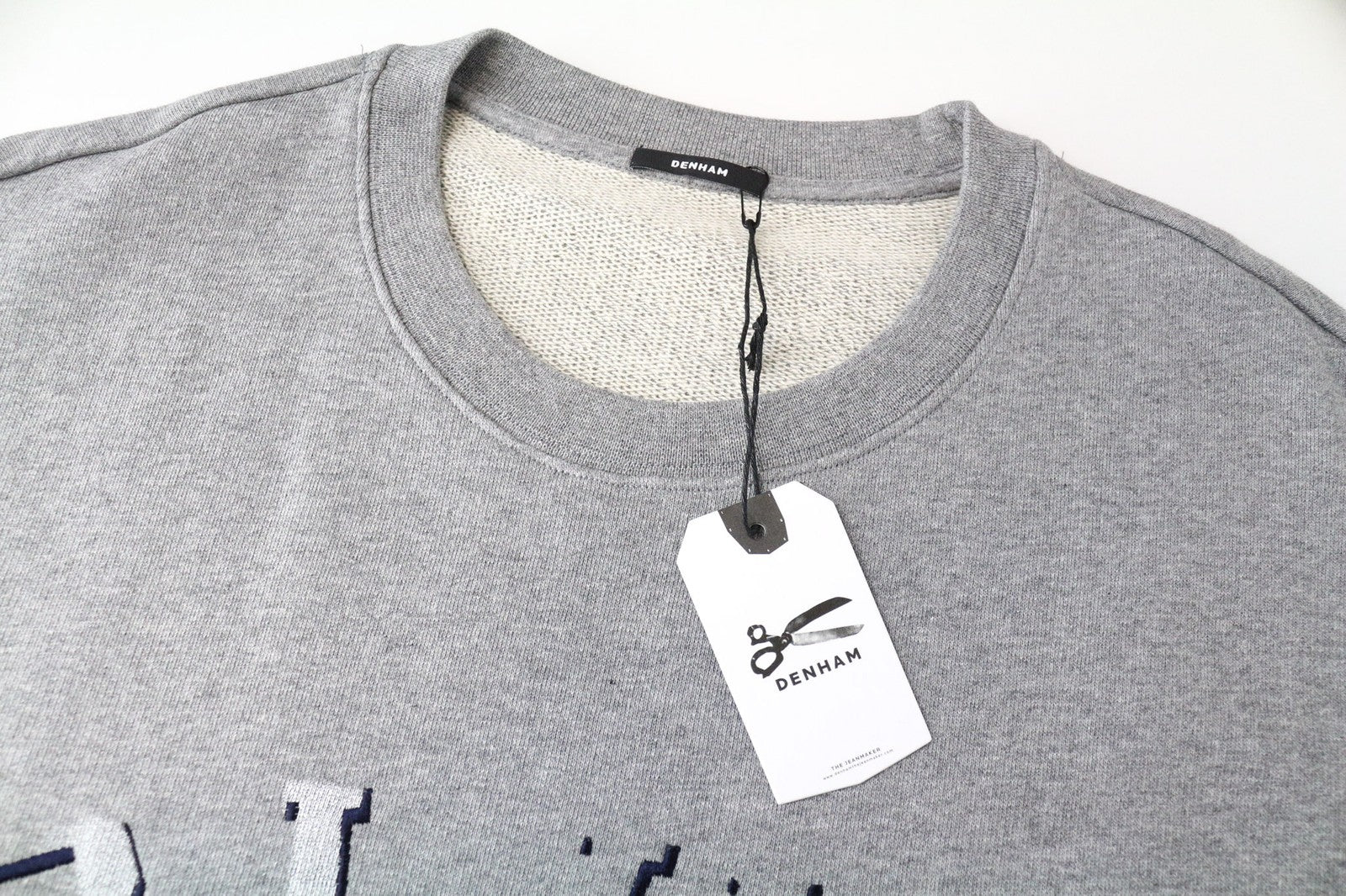 DENHAM moteriškas pilkas medvilninis džemperis ilgomis rankovėmis „Blue City“