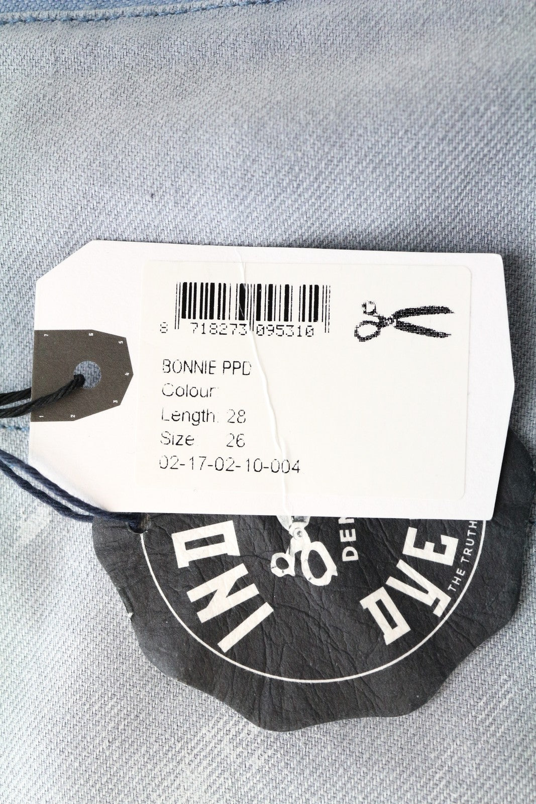 DENHAM Bonnie plačių klešnių moteriškos kelnės W26/L28 mėlynos sendinto lino imitacijos