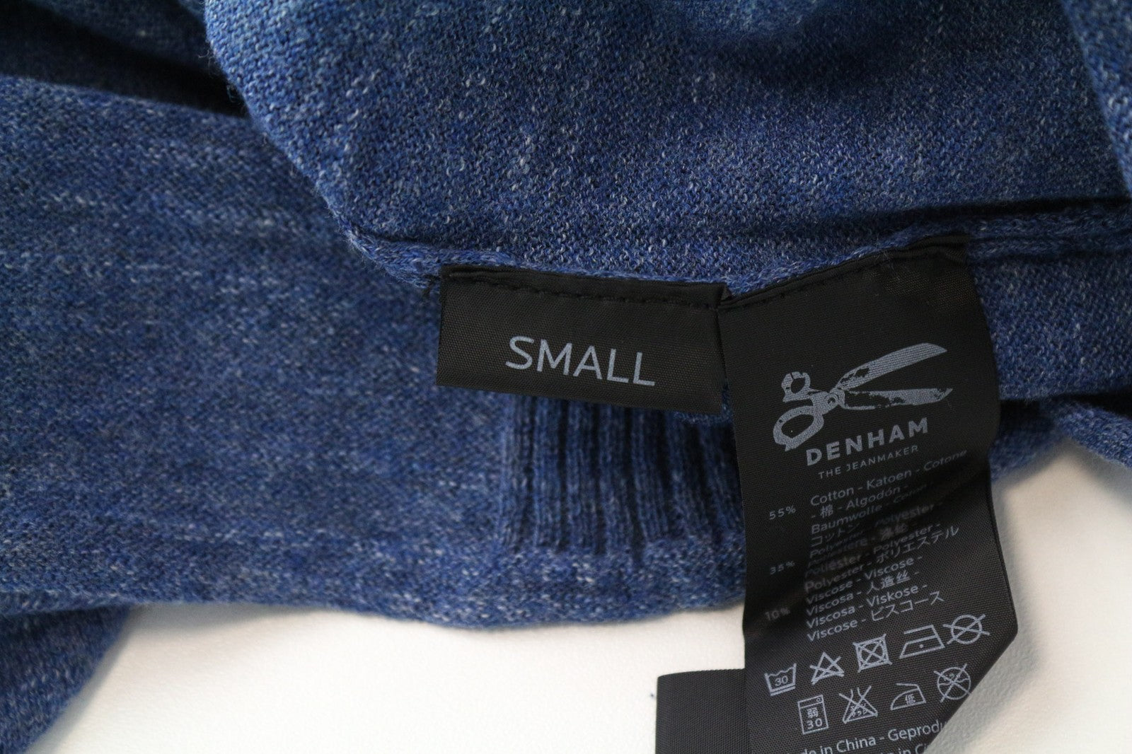 DENHAM Carver vyriškas džemperis su mėlyna medvilnės mišinio palaidine ilgomis rankovėmis, laisvalaikio stiliaus