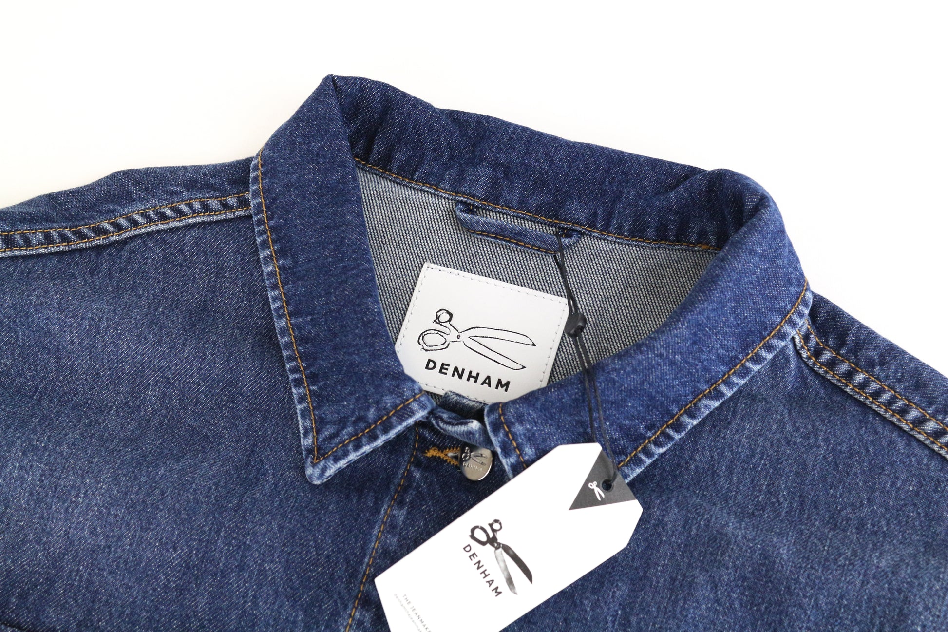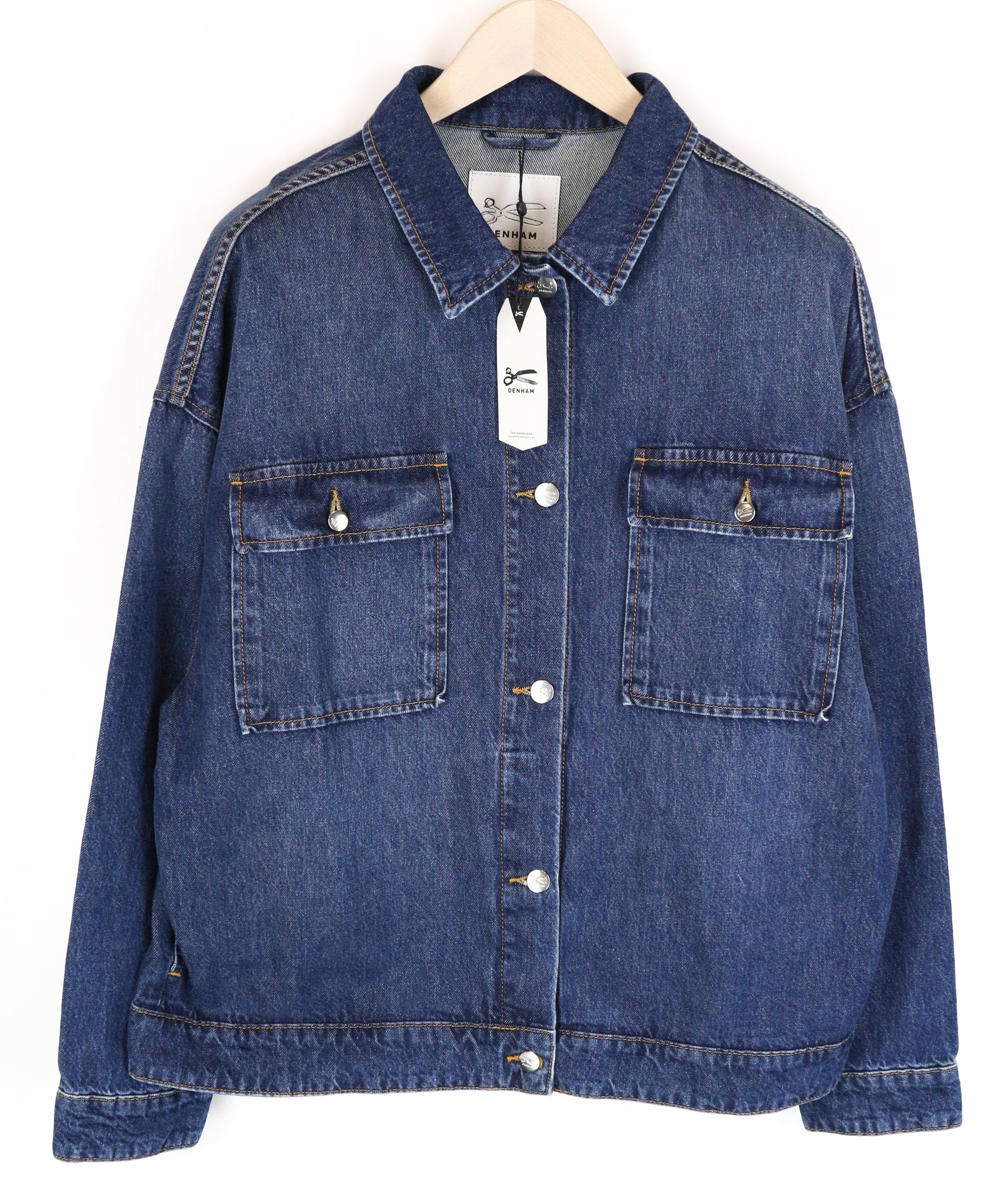 DENHAM Century Trucker striukė M mėlyna ilgomis rankovėmis medvilninis logotipas džinsinio stiliaus