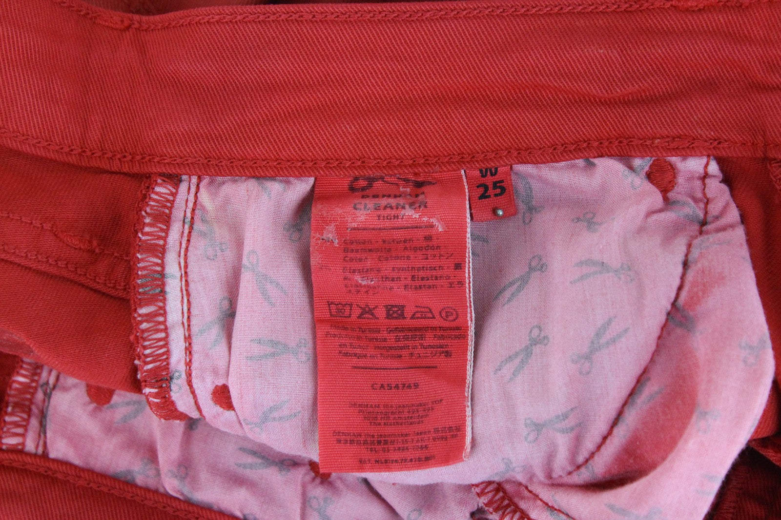 DENHAM Cleaner moteriški raudoni W25/L34 vaškuoti tamprūs, ploni džinsai