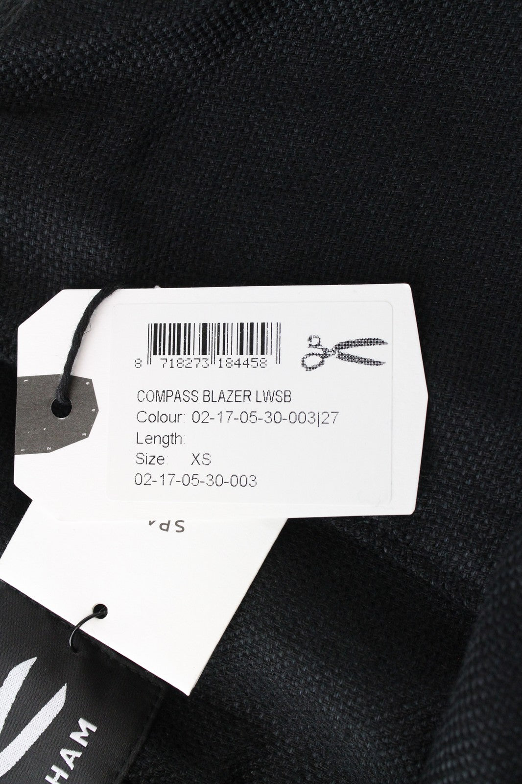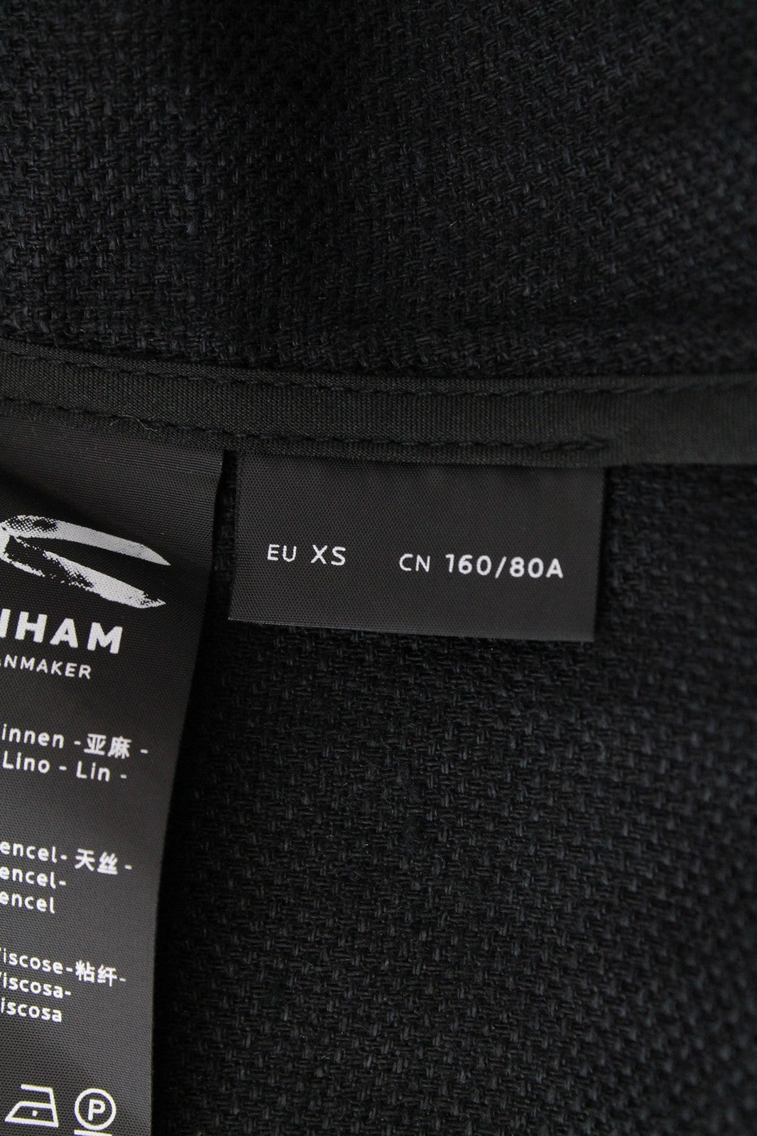 DENHAM „Compass XS“ moteriškas švarkas su apykakle, dryžuotas, juodas, paprastas, lininis audinys su viena saga
