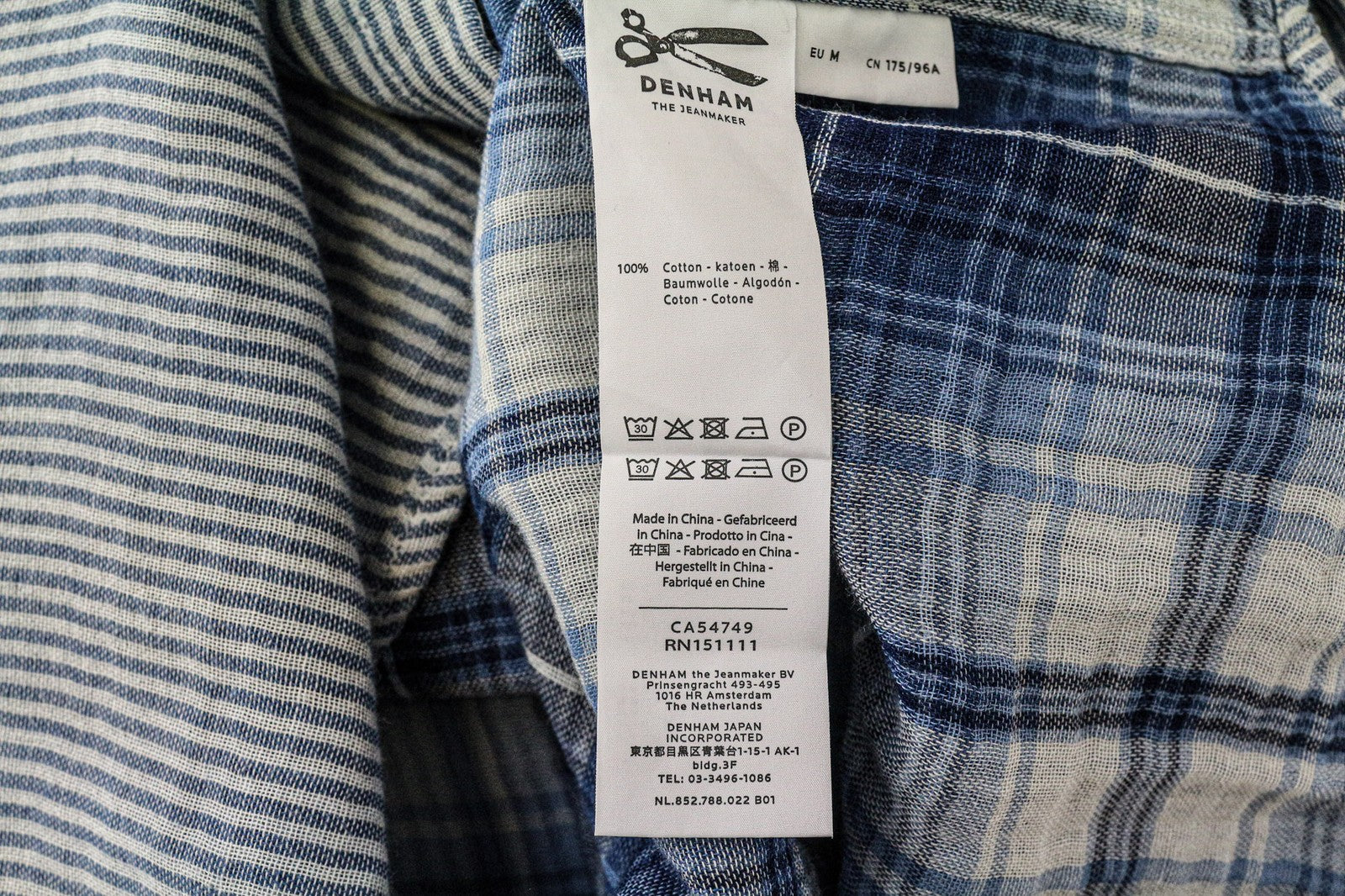 DENHAM Ford vyriški marškiniai M mėlyni dryžuoti medvilniniai melanžo spalvos trumpomis rankovėmis su sagomis