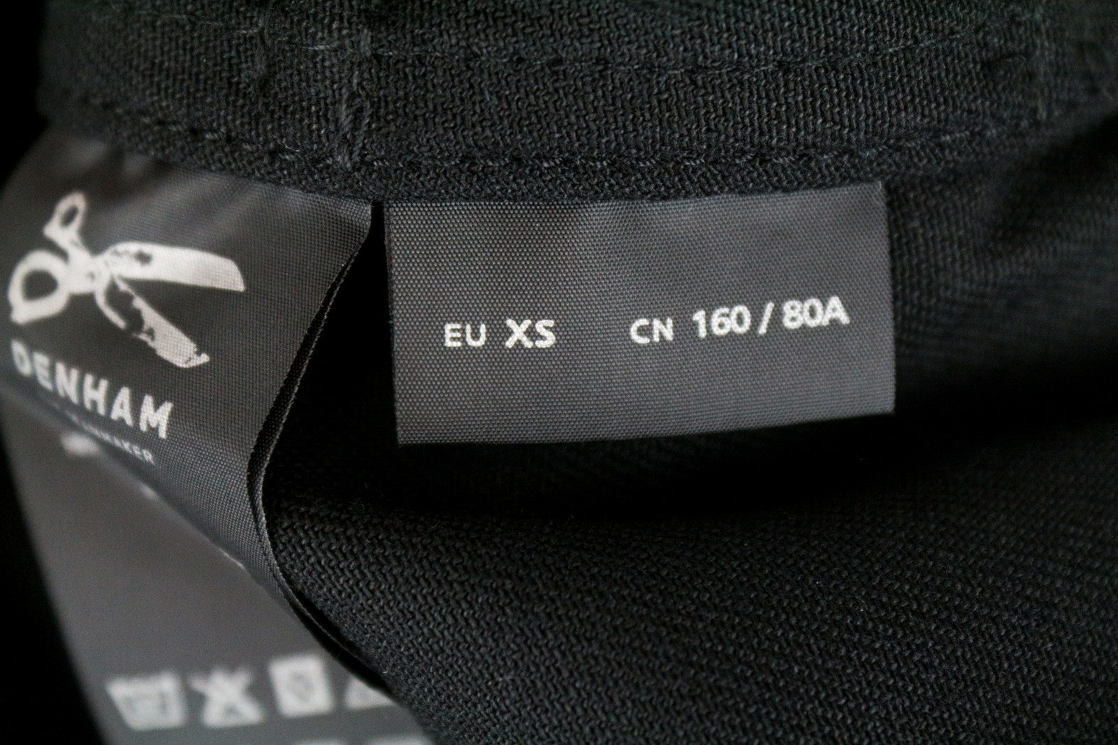 DENHAM Moonlight moteriškas švarkas XS dydžio, juodos spalvos, su diržu ir sagomis užsegama apykakle