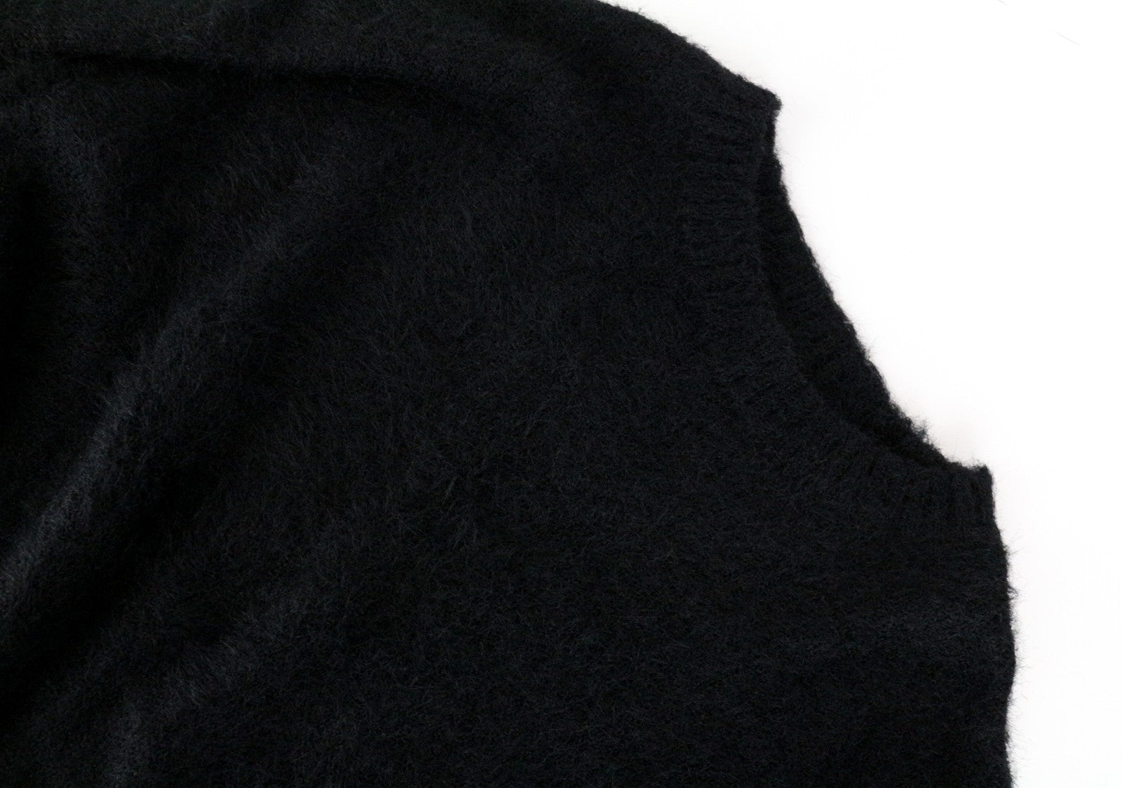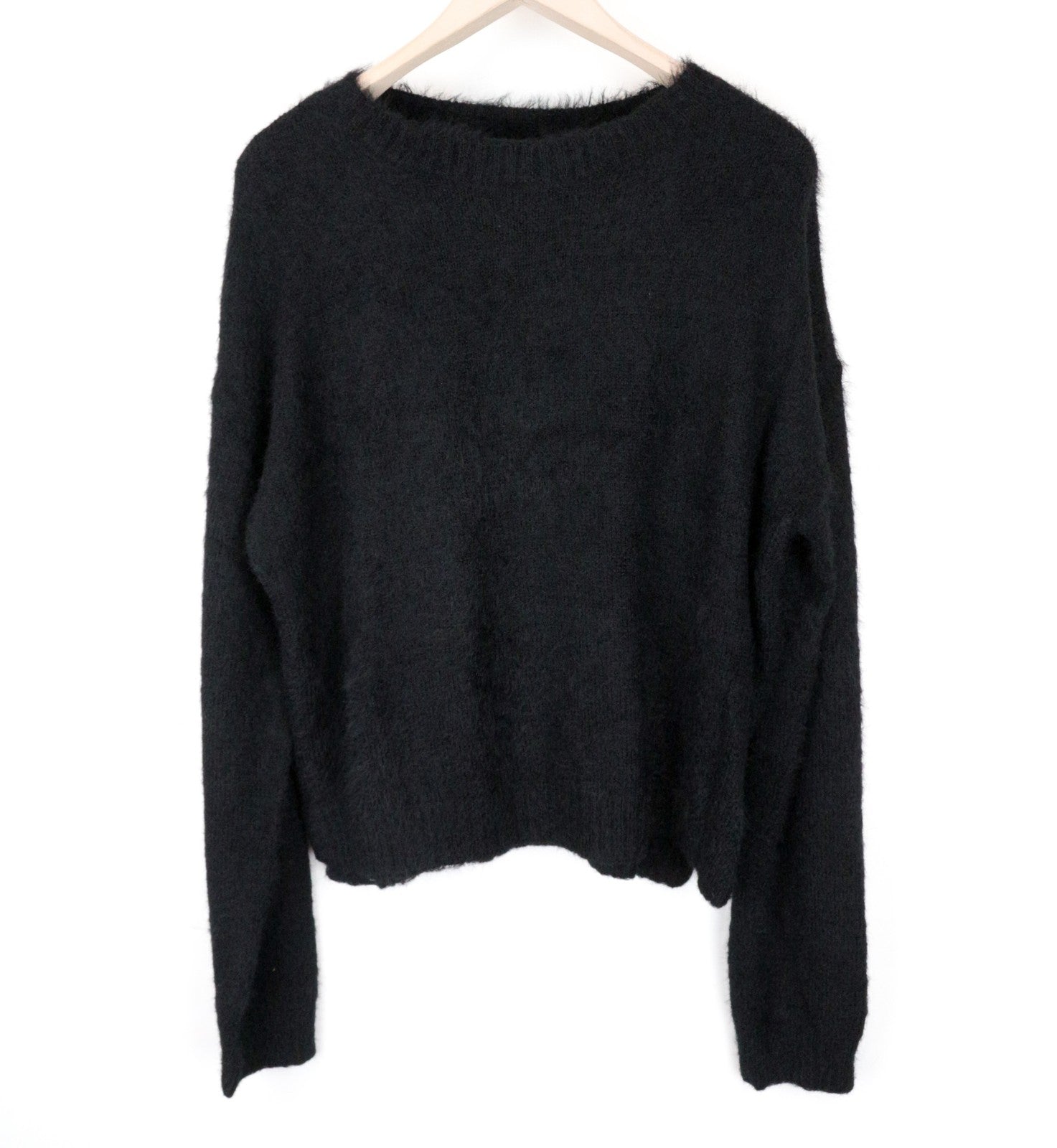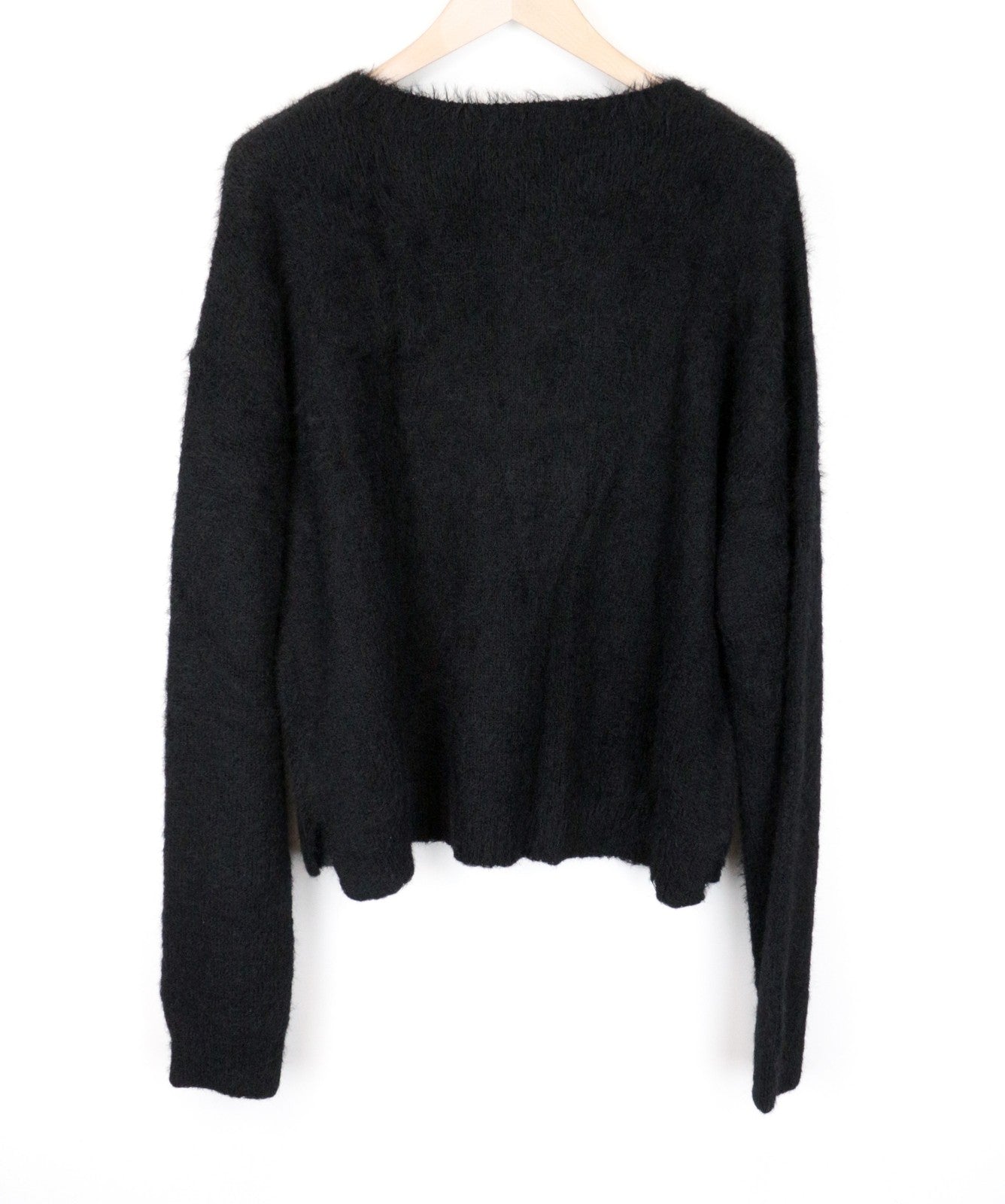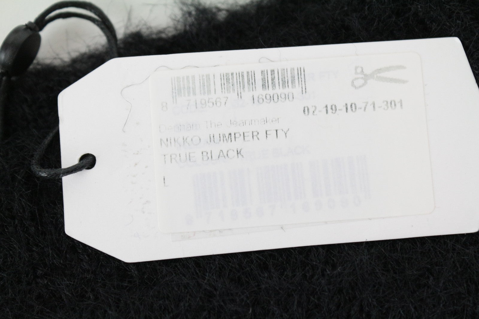 DENHAM Nikko moteriškas L dydžio juodas megztinis su vilnoniu apvaliu raštu, prigludęs, minkšto stiliaus megztinis