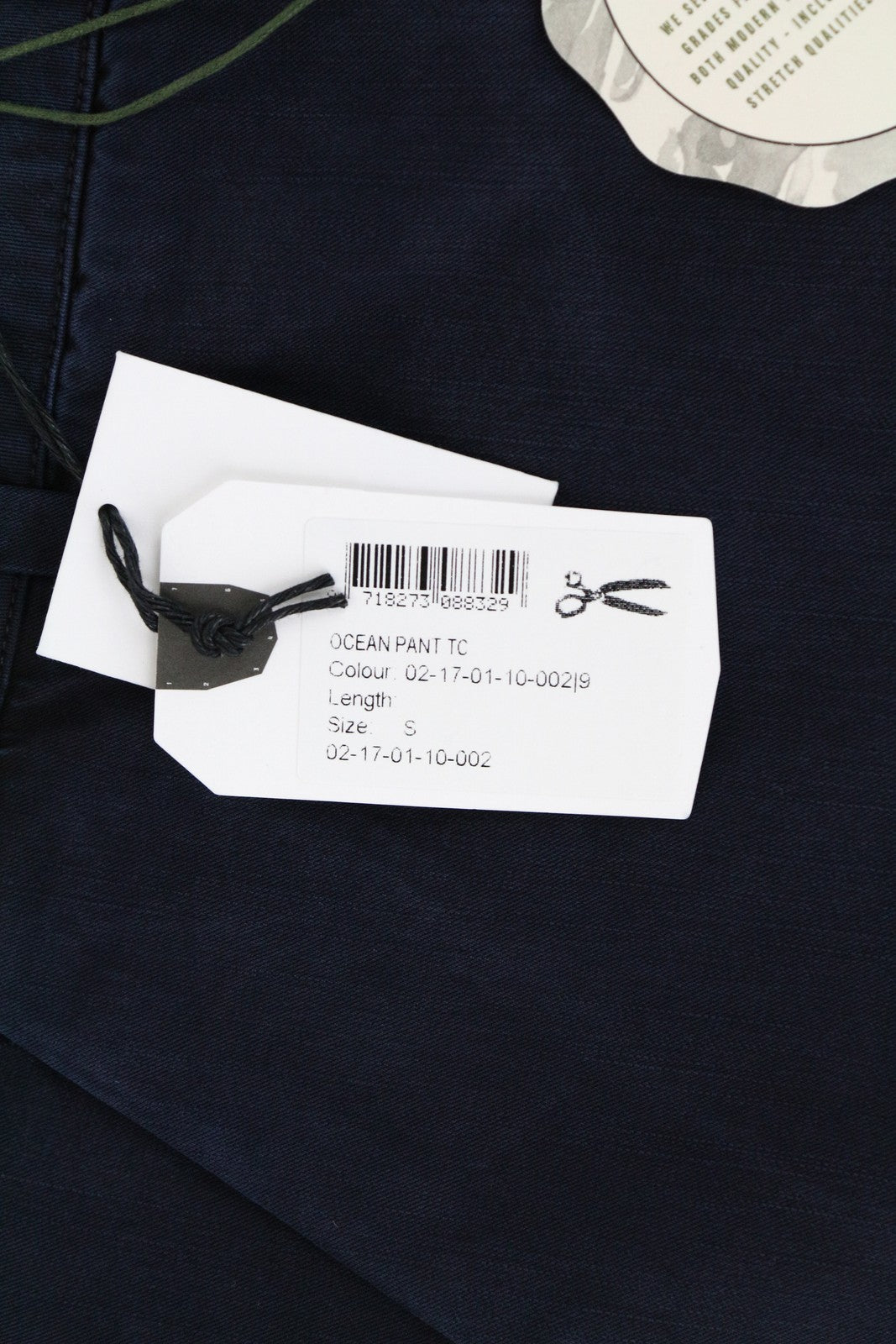 DENHAM Ocean moteriškos S dydžio tamsiai mėlynos medvilninės chino lengvos klasikinės kelnės su užtrauktuku