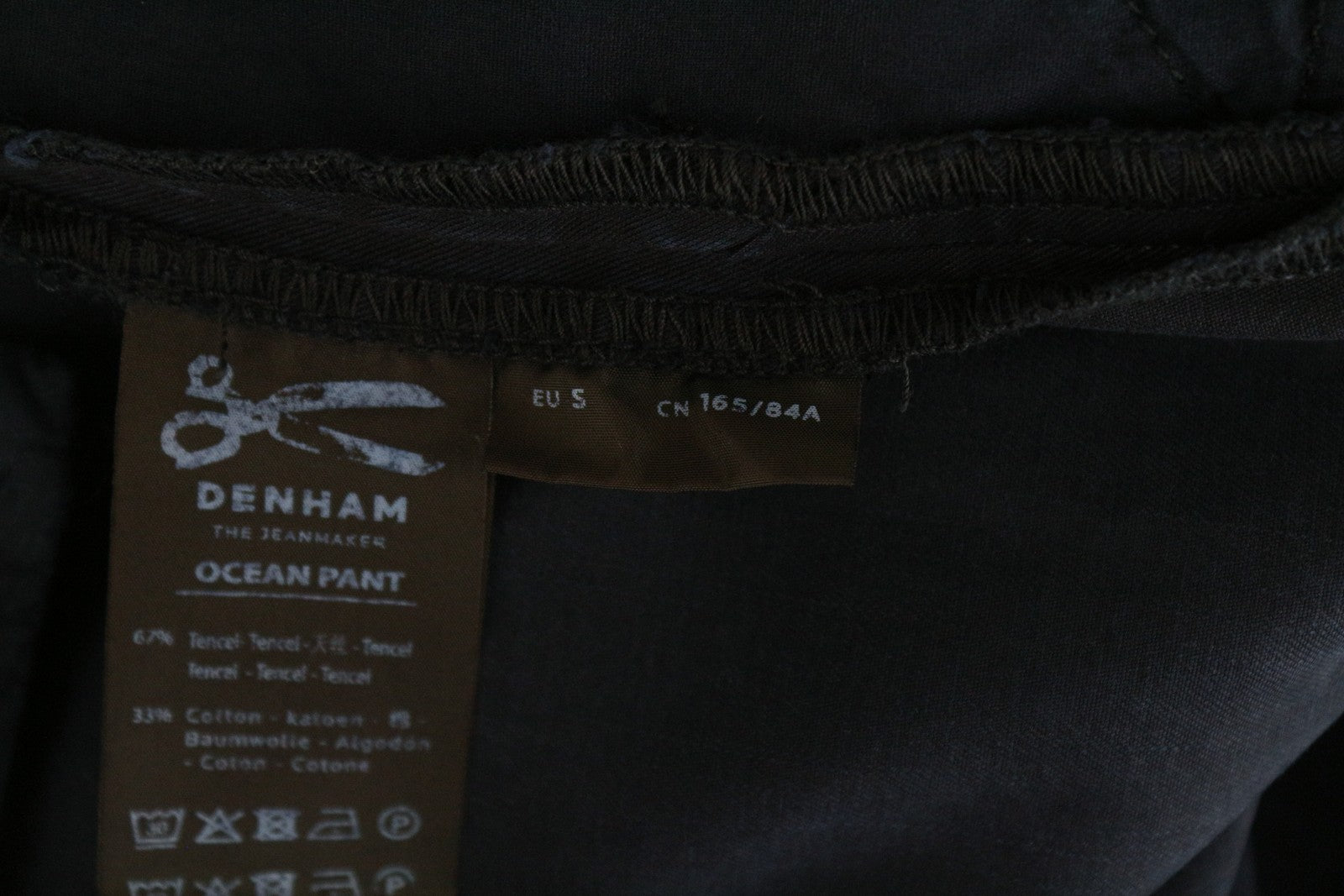 DENHAM Ocean moteriškos S dydžio kelnės, tamsiai mėlynos, lengvos, klasikinės medvilnės mišinio chino kelnės