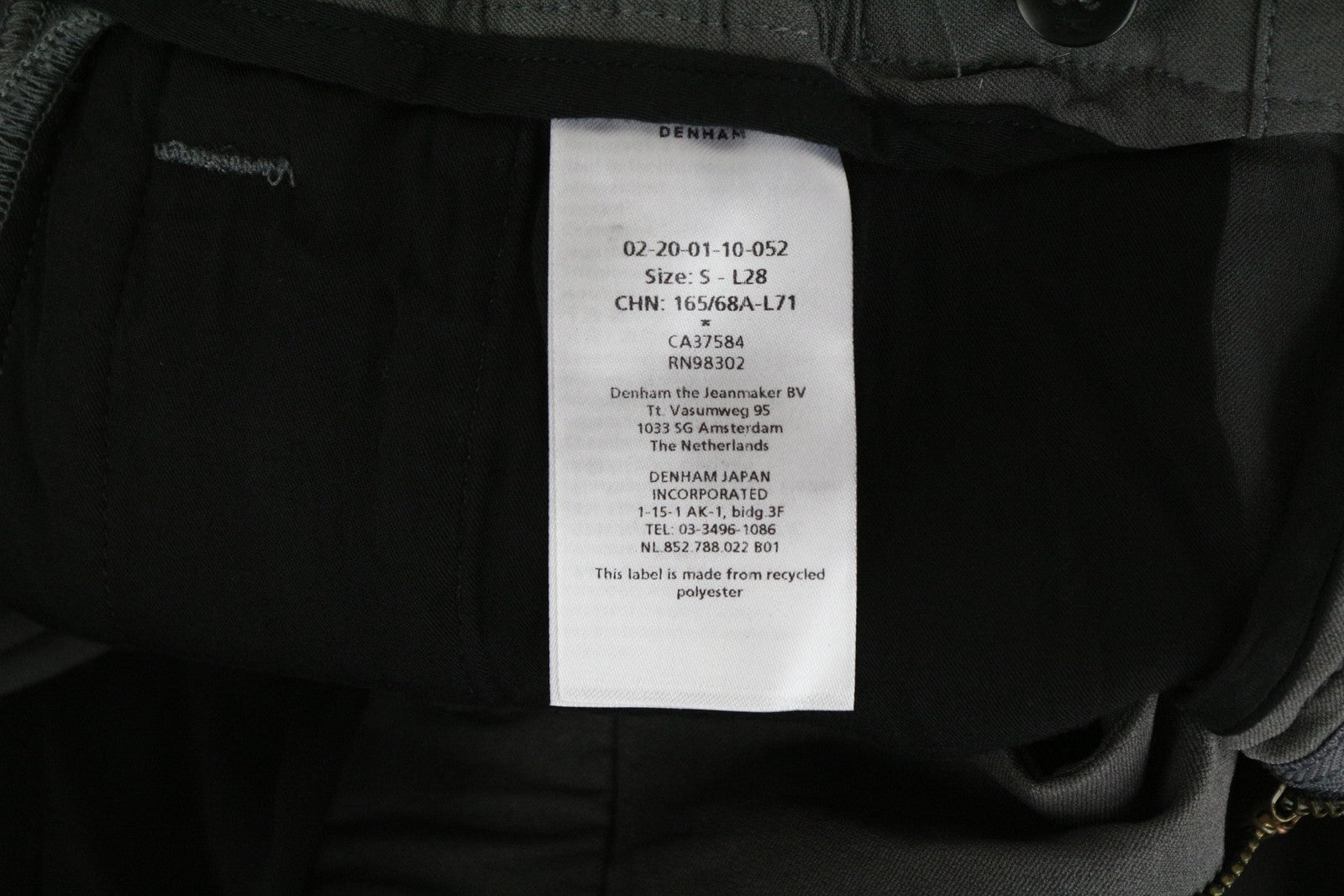 DENHAM Preston Men's Trousers S Dark Grey Tapered Fit Flat-Front Zippered Pants