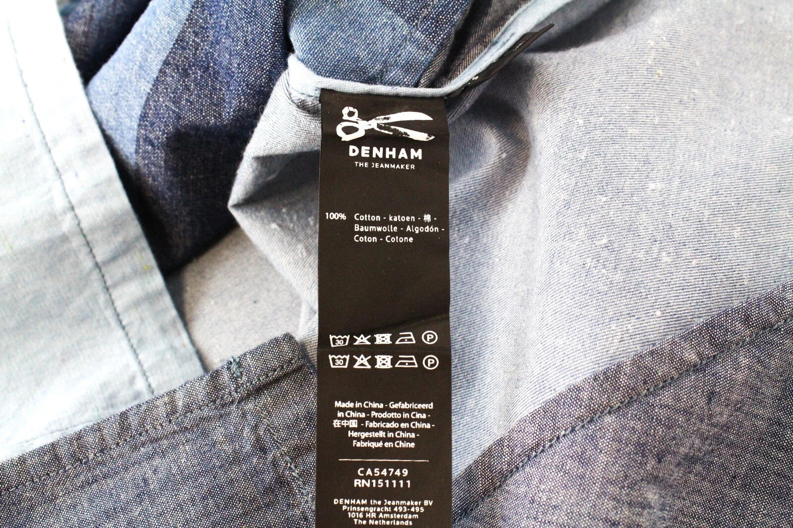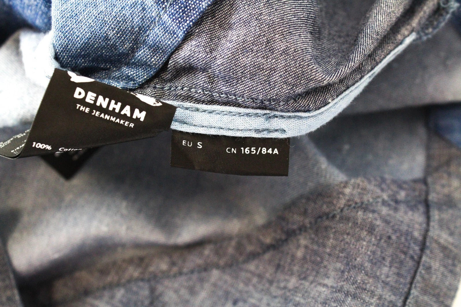 DENHAM Seascape Women's T-Shirt S Blue Patterned Cotton Short Sleeve Denim Look