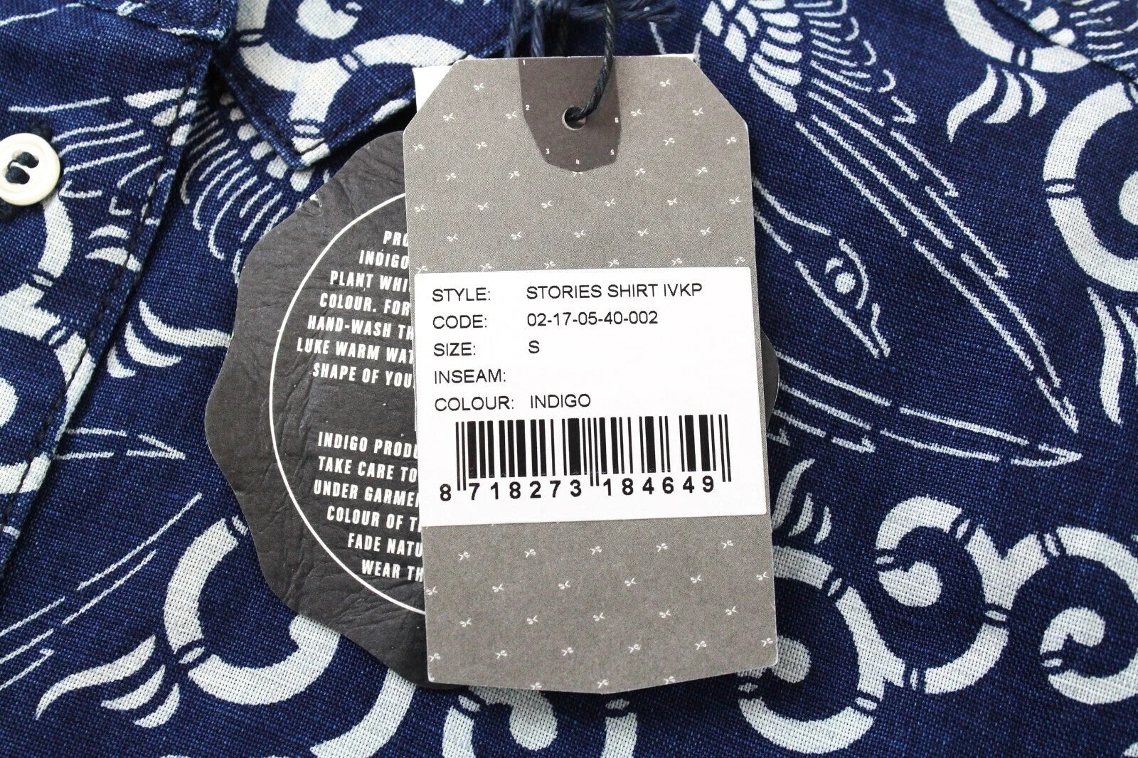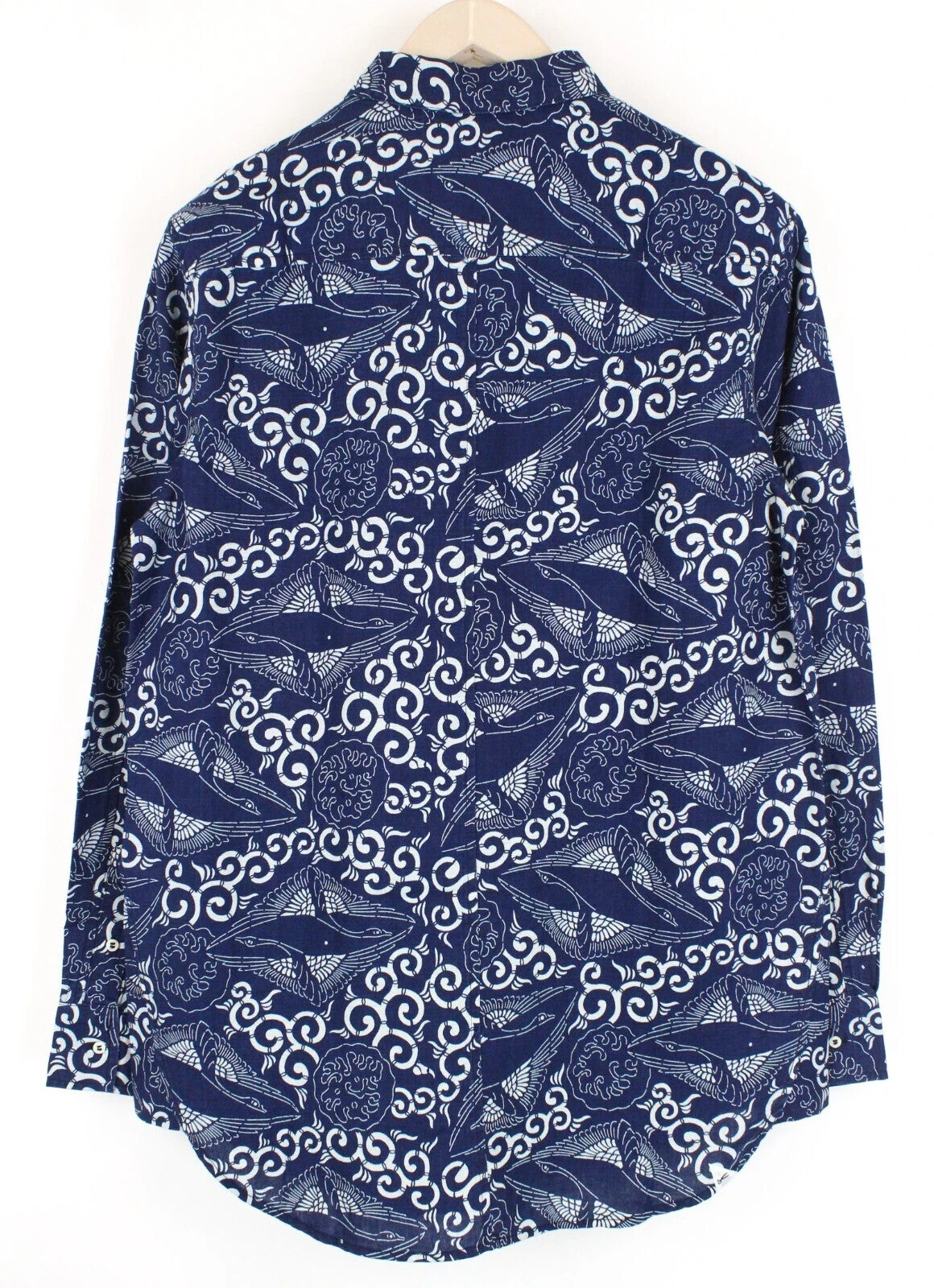 DENHAM Stories vyriški marškiniai su tamsiai mėlyna spalva, medvilniniai lininiai ilgomis rankovėmis, raštuoti, su sagomis