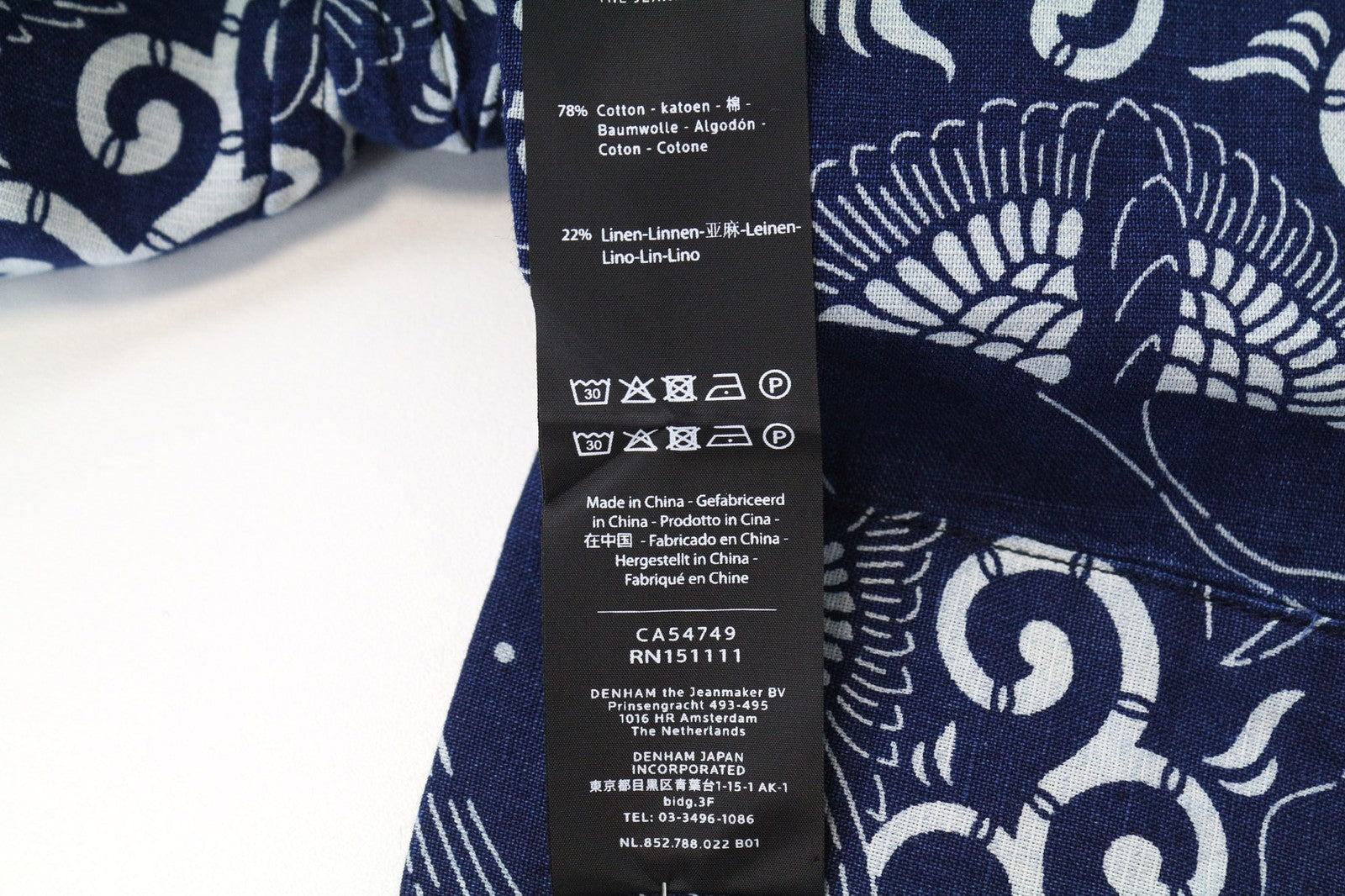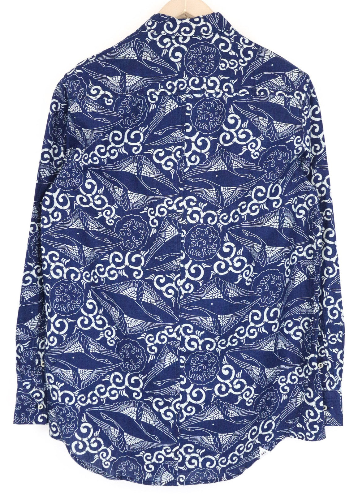 DENHAM Stories moteriški marškinėliai M mėlyni rytietiško rašto ilgomis rankovėmis su sagomis
