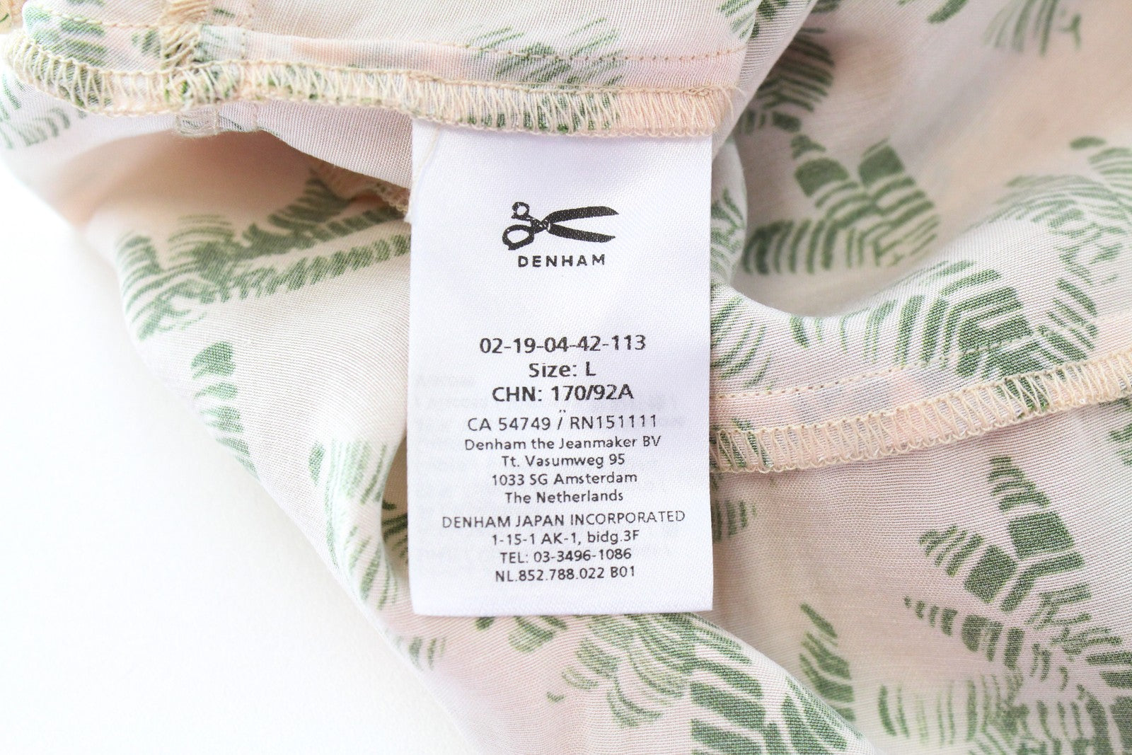 DENHAM Thelma T-Shirt Beige V-Neck Palm Pattern L Short Lightweight for Women