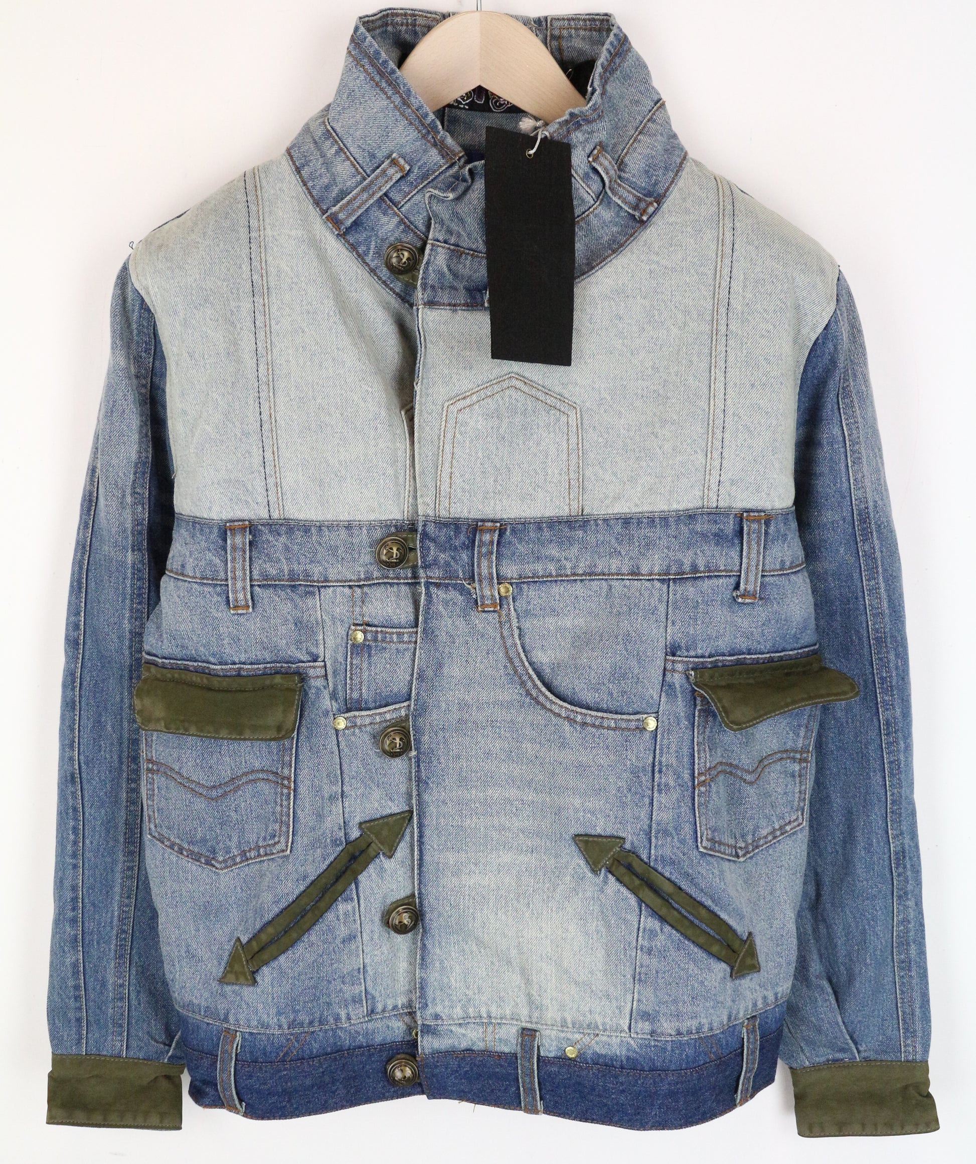 DESIGUAL mėlynas džinsinis švarkelis 38 moteriškas „Geisha Sequins“ su gryna medvilne ir skalbtos išvaizdos blizgučiais