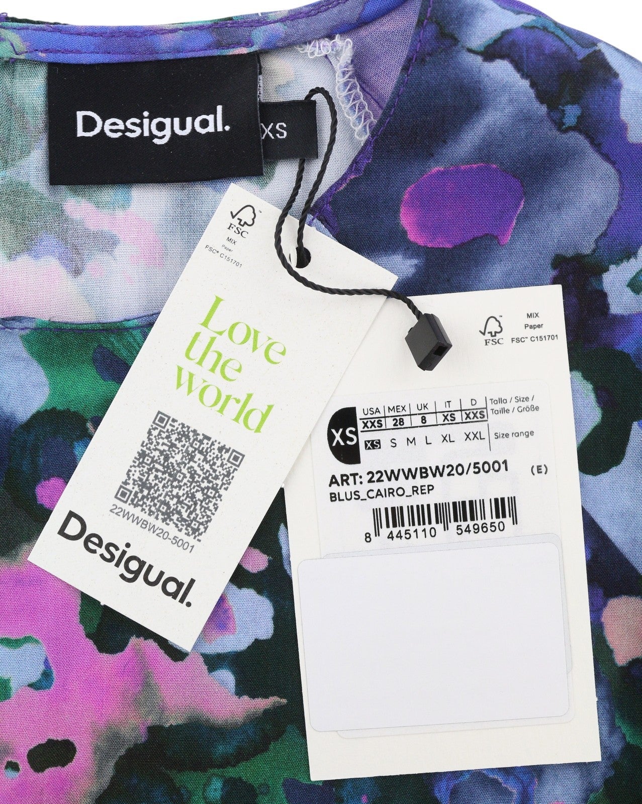 DESIGUAL Blus Cairo Rep Women Blouse XS Colourful Floral Print Long Sleeve