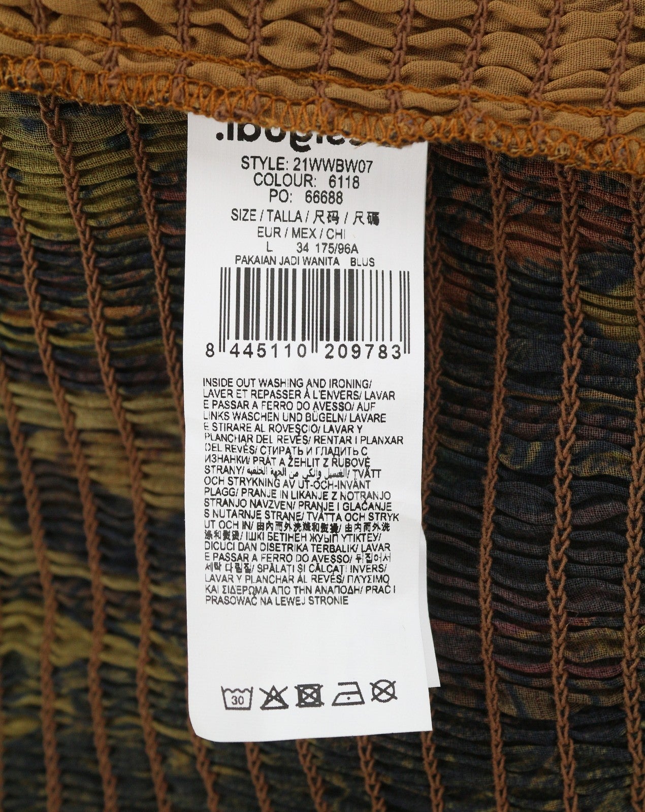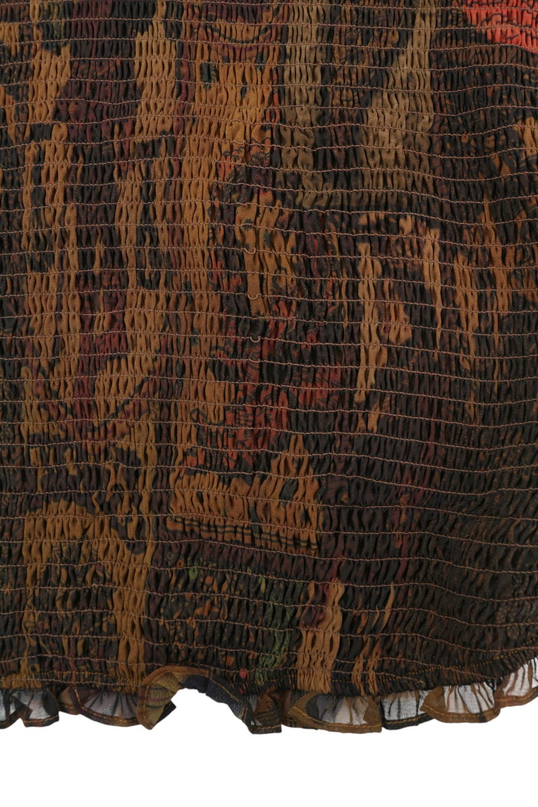 DESIGUAL Blus Hisopo Women Blouse L Brown Honeycomb Printed Ruffled Collar