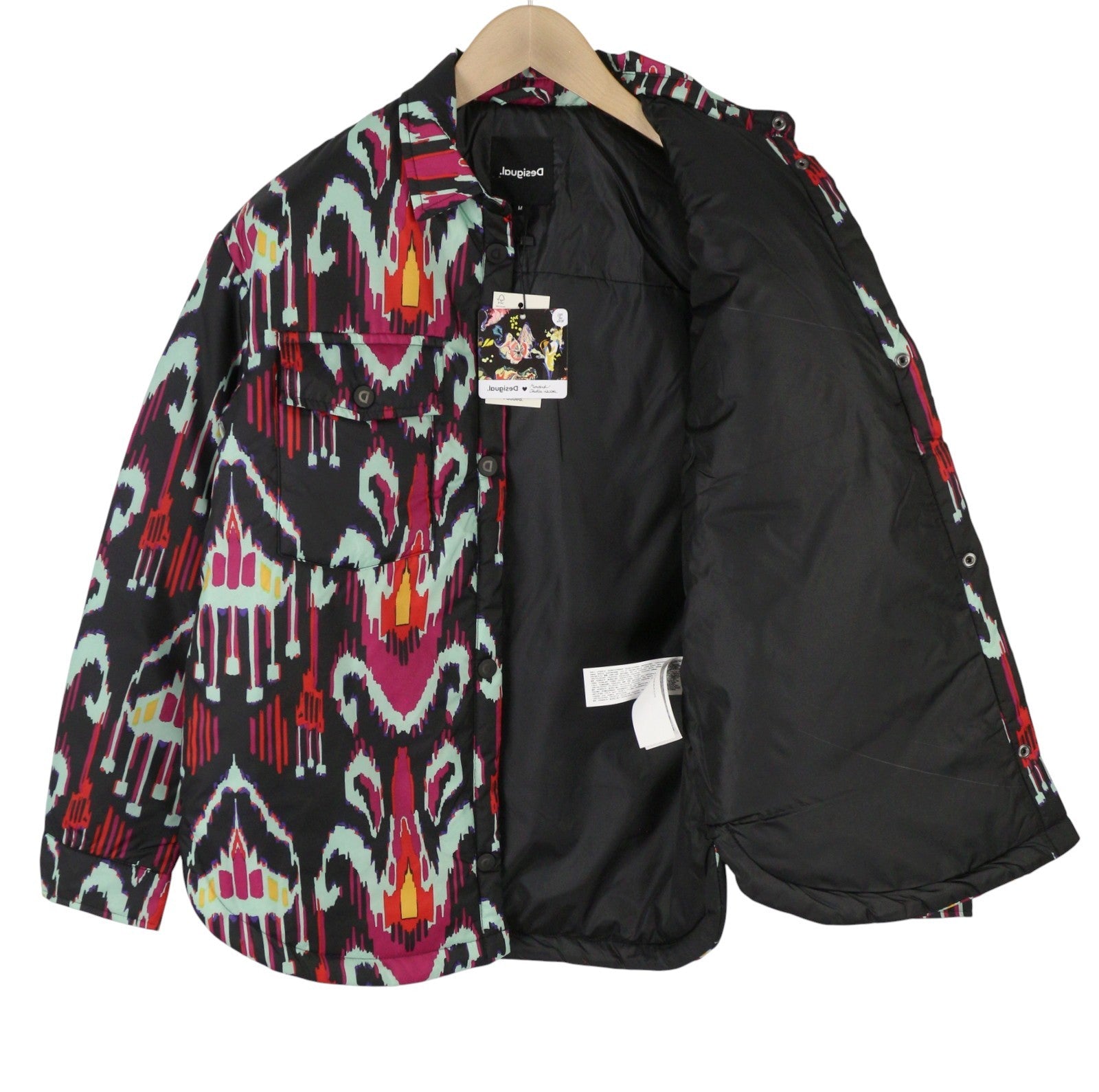 DESIGUAL Eliot Women Jacket M Colourful Abstract Print Padded Snap Buttons