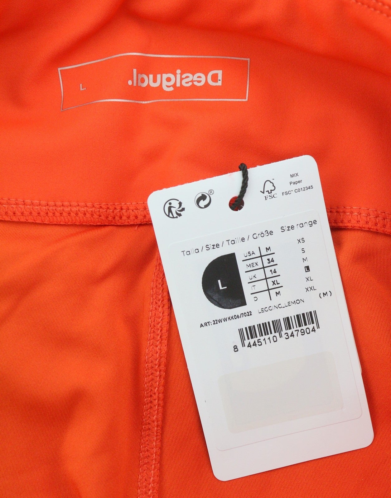 DESIGUAL Lemon Women Leggings L Orange Patterned Cropped Ankle Stretch Fitted